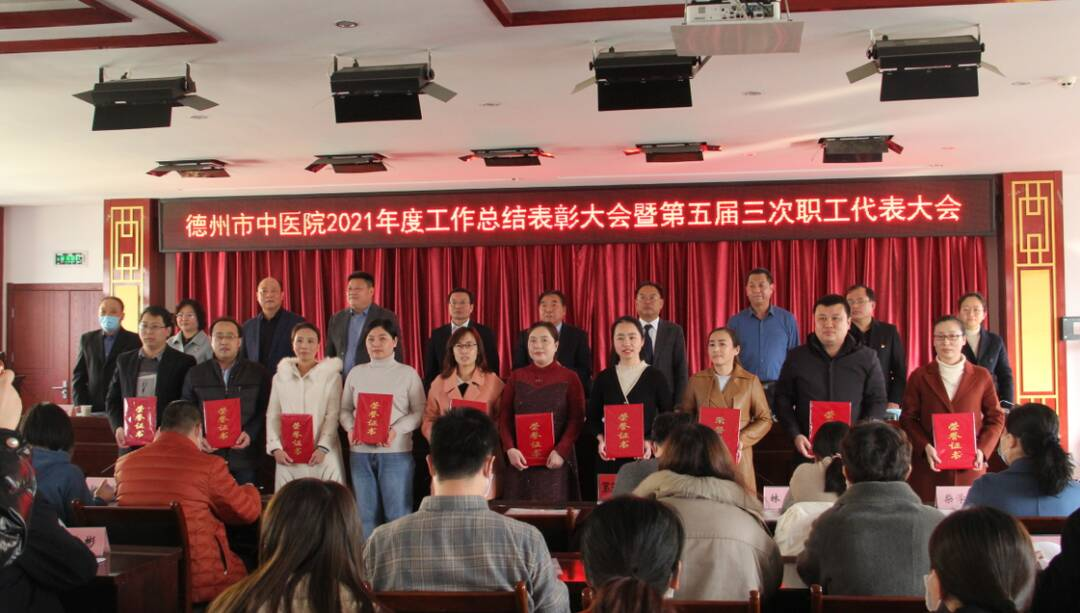 2月24日,德州市中医院2021年度工作总结表彰大会暨第五届三次职工代表大会隆重召开。德州市总工会三级调研员邱家起同志,德州市医务工会常务副主席、市卫生健康委机关工会主席刘喜占出席会议并分别致辞。德州市中医院党委副书记陈光伟主持会议,院领导班子成员、职工代表及列席代表130人参加会议。