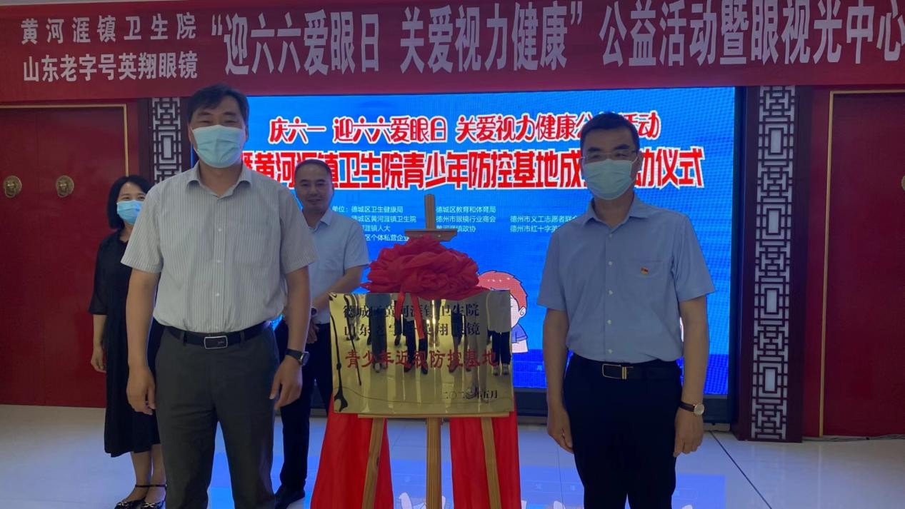 活动现场,基地向黄河涯镇小学生捐赠了价值57.8万元的屈光发育档案,德州市政协委员、工商联副主席张成河、黄河涯镇党委副书记齐晓磊共同为青少年近视防控基地揭牌。
