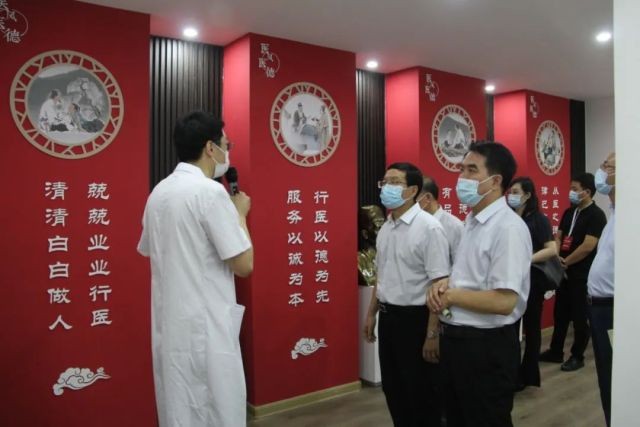 6月23日下午,部分与会领导、嘉宾来德州市中医院现场观摩,医院党委书记李卫东、院长杨京慧以及院领导班子成员陪同,实地参观了治未病科,康复科PT大厅、理疗中心、运动康复中心,眼科以及中医健康教育基地等特色科室。