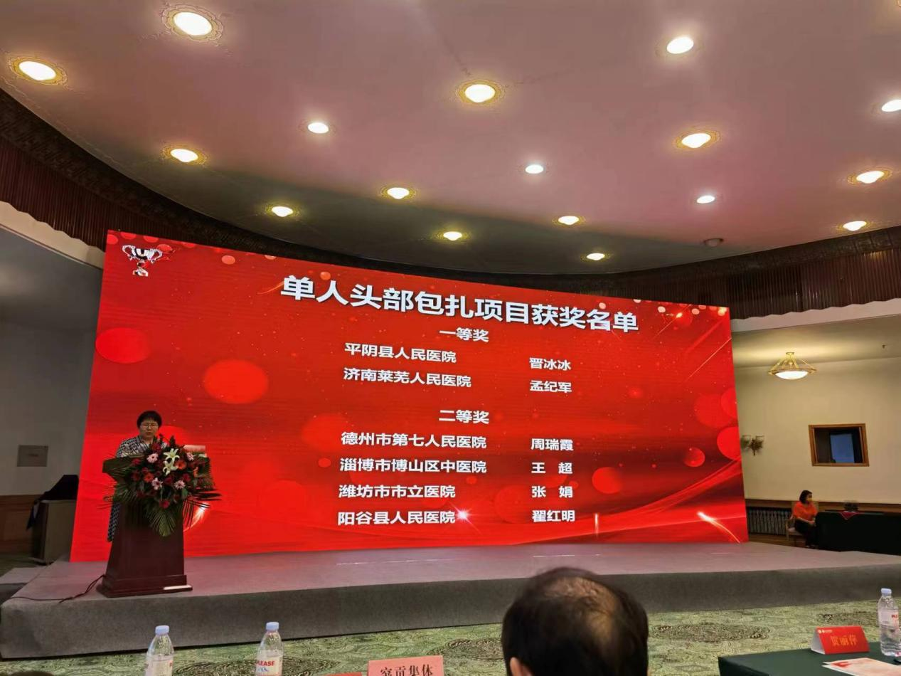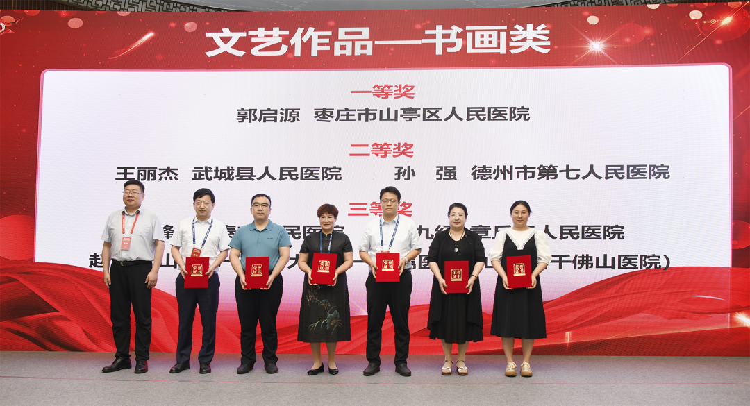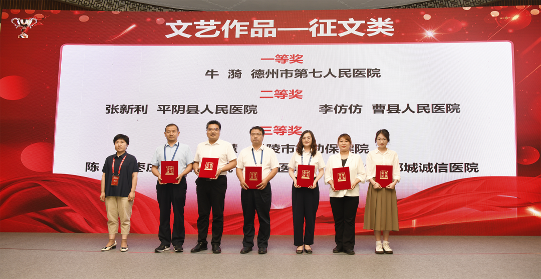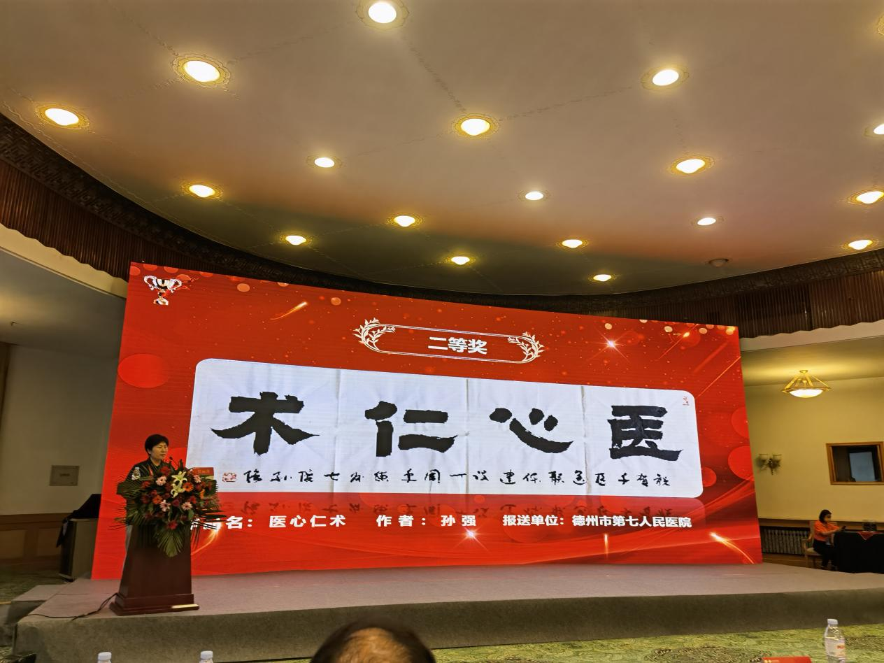 德州市第七人民医院副院长王炳花荣获突出贡献个人奖、宣传科牛漪的征文作品《忆峥嵘岁月 谱发展新篇》荣获文艺作品--征文类一等奖、药剂科孙强的书法作品《医者仁心》荣获文艺作品----书画类作品二等奖、急诊科周瑞霞荣获单人头部包扎项目二等奖。