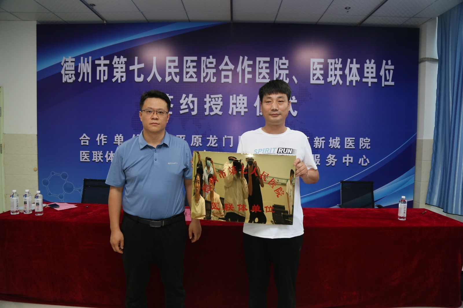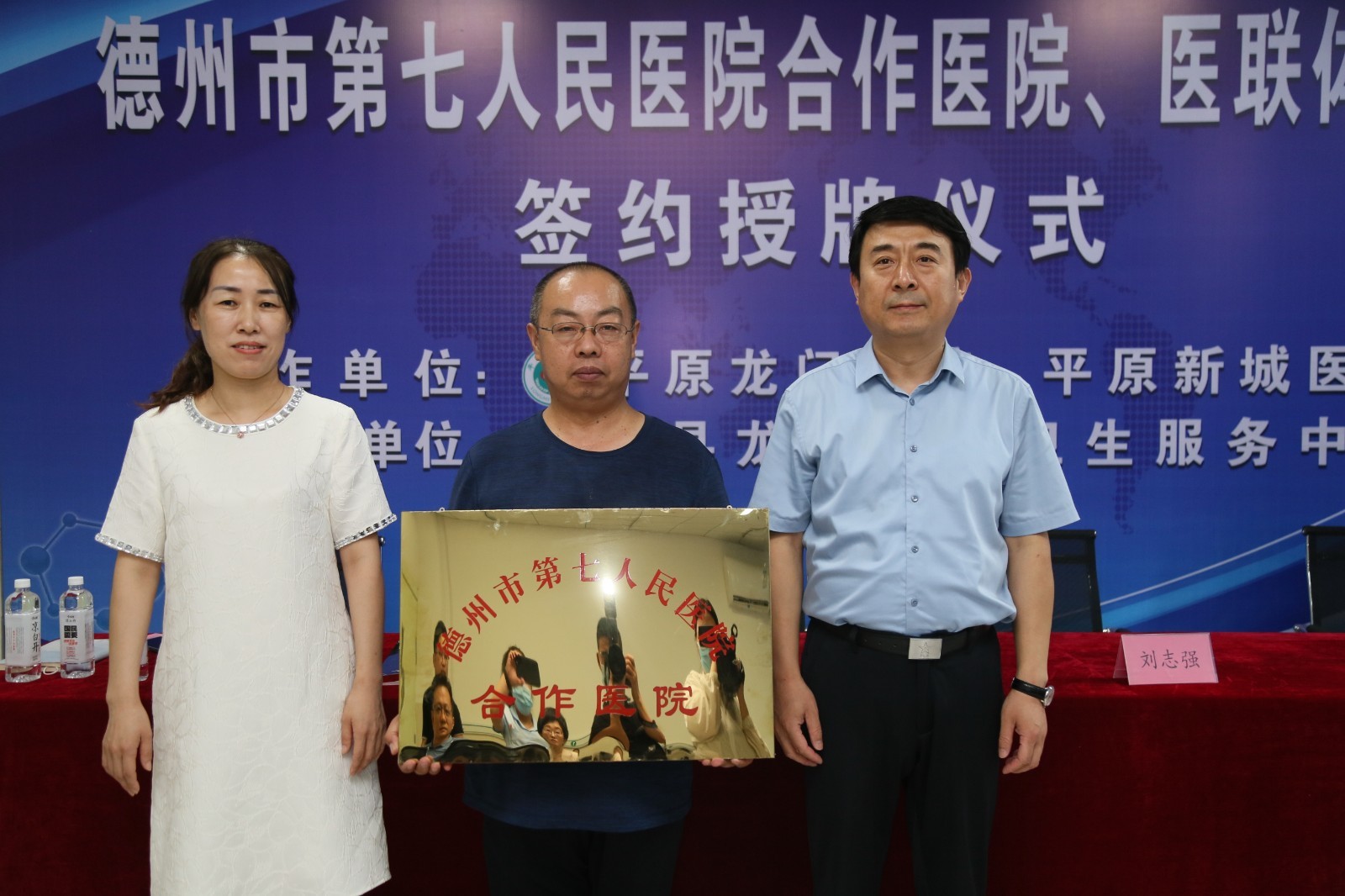 德州市第七人民医院医务科科长代新为平原龙门社区卫生服务中心授牌。平原龙门社区卫生服务中心被授予“德州市第七人民医院医联体单位”。