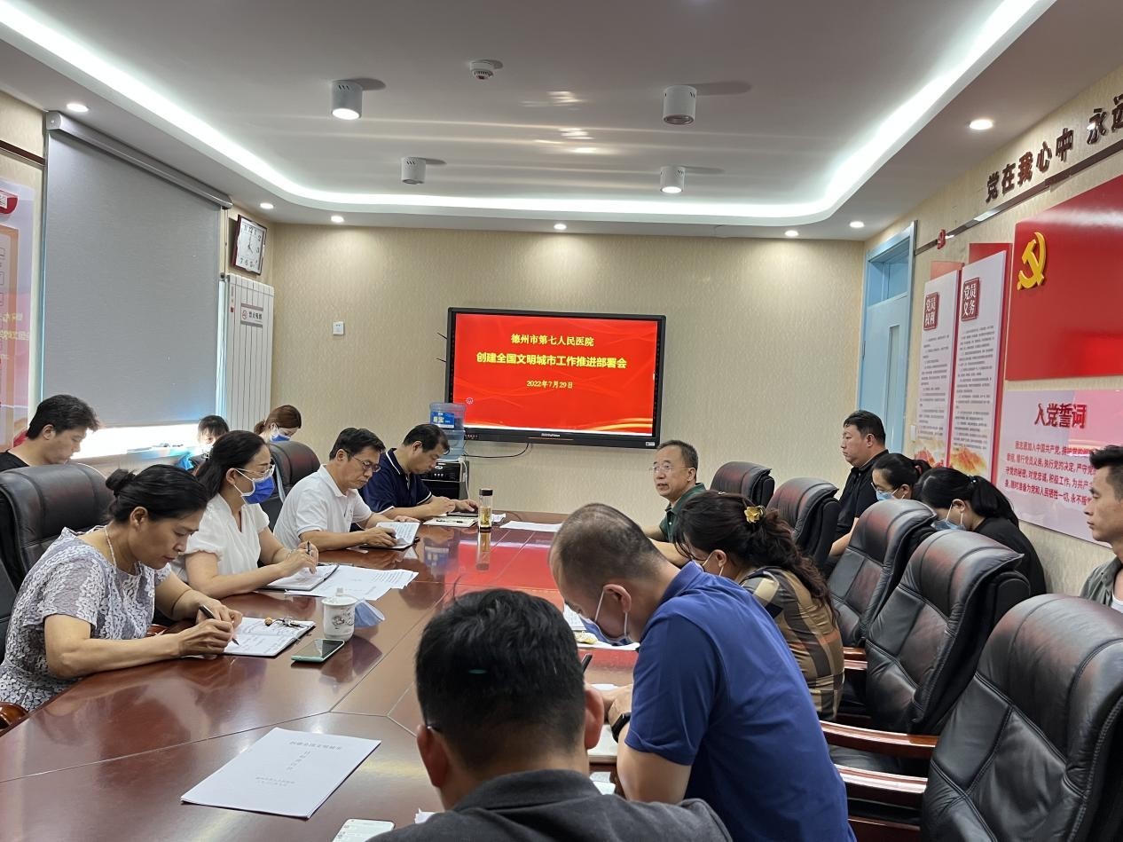 7月29日,德州市第七人民医院在门诊四楼会议室召开创建全国文明城市工作推进部署会,安排部署创城模拟测评迎检准备工作。医院党委书记翟学军、部分领导班子成员、创城专班人员及相关科室负责人参加,会议由医院党委副书记赵连浩主持。
