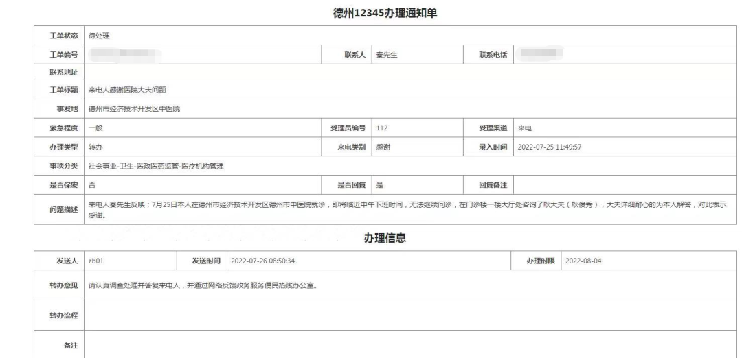 前几日,德州市中医院接到一个“不一般”的“12345”承办单,和一般反映投诉问题的工单不同,这位市民打电话来是为了表扬德州市中医院门诊办副主任耿俊秀。