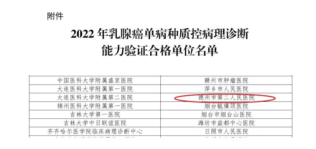 近日,德州市第二人民医院病理科,顺利通过2022年国家癌症中心乳腺癌单病种质控病理诊断能力验证。