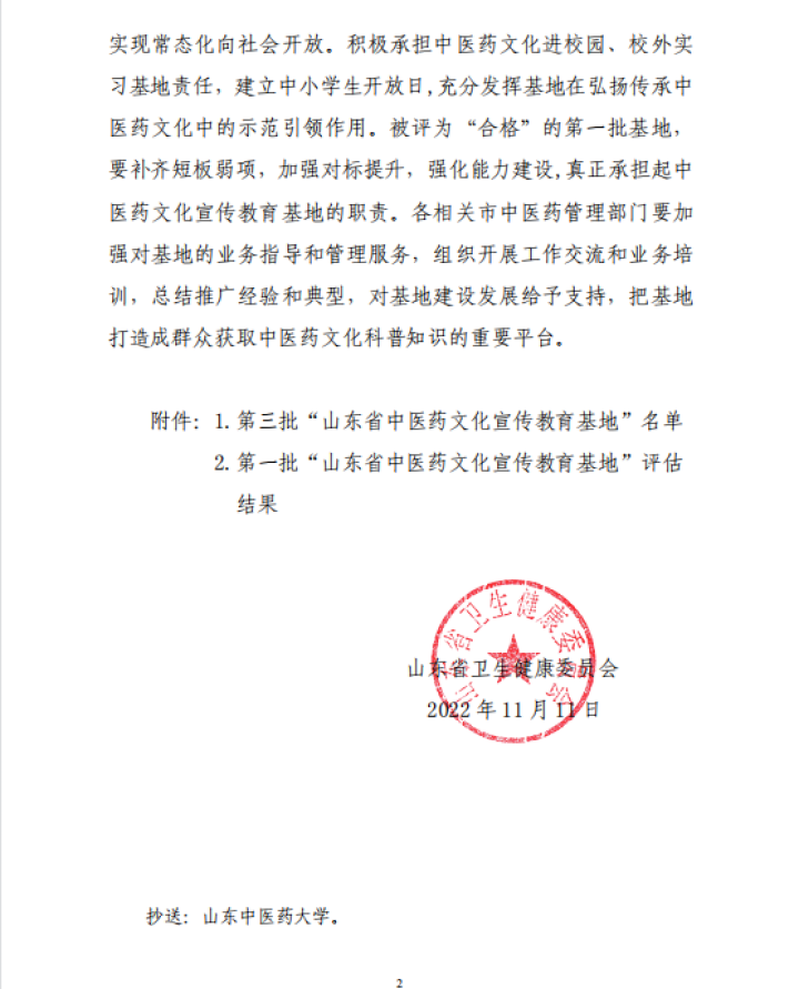 日前,山东省卫生健康委员会发布《关于公布第三批“山东省中医药文化宣传教育基地”和第一批“山东省中医药文化宣传教育基地”评选结果的通知》,德州市中医院荣登榜单。