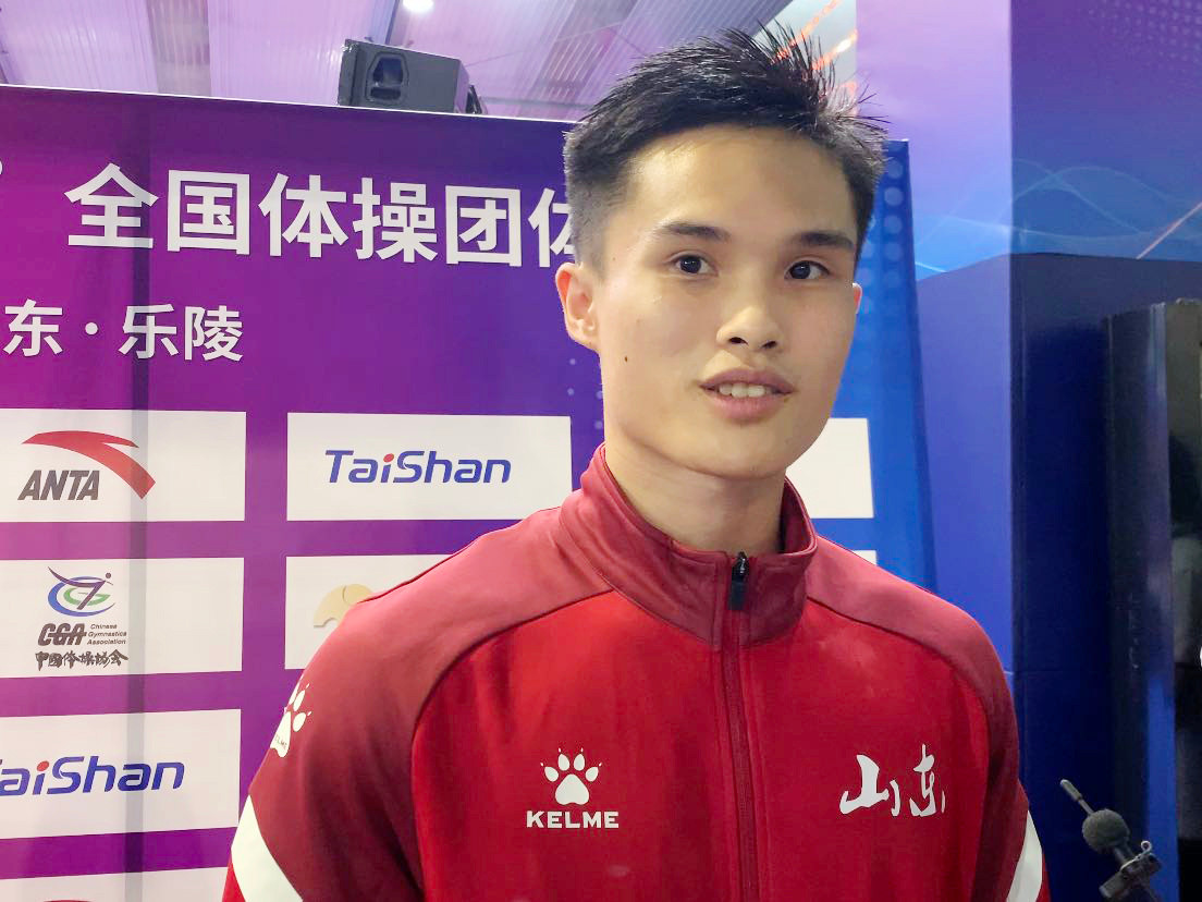 在自由体操团体赛中,山东体操队发挥出色夺得冠军。“团体赛夺冠的荣誉感会比个人赛更强,大家的努力没有白费,我会继续加油,争取接下来的比赛拿到好成绩。”山东队队员韦国政在赛后采访中说。(姜玉茹 张梓琪 杨凯 )