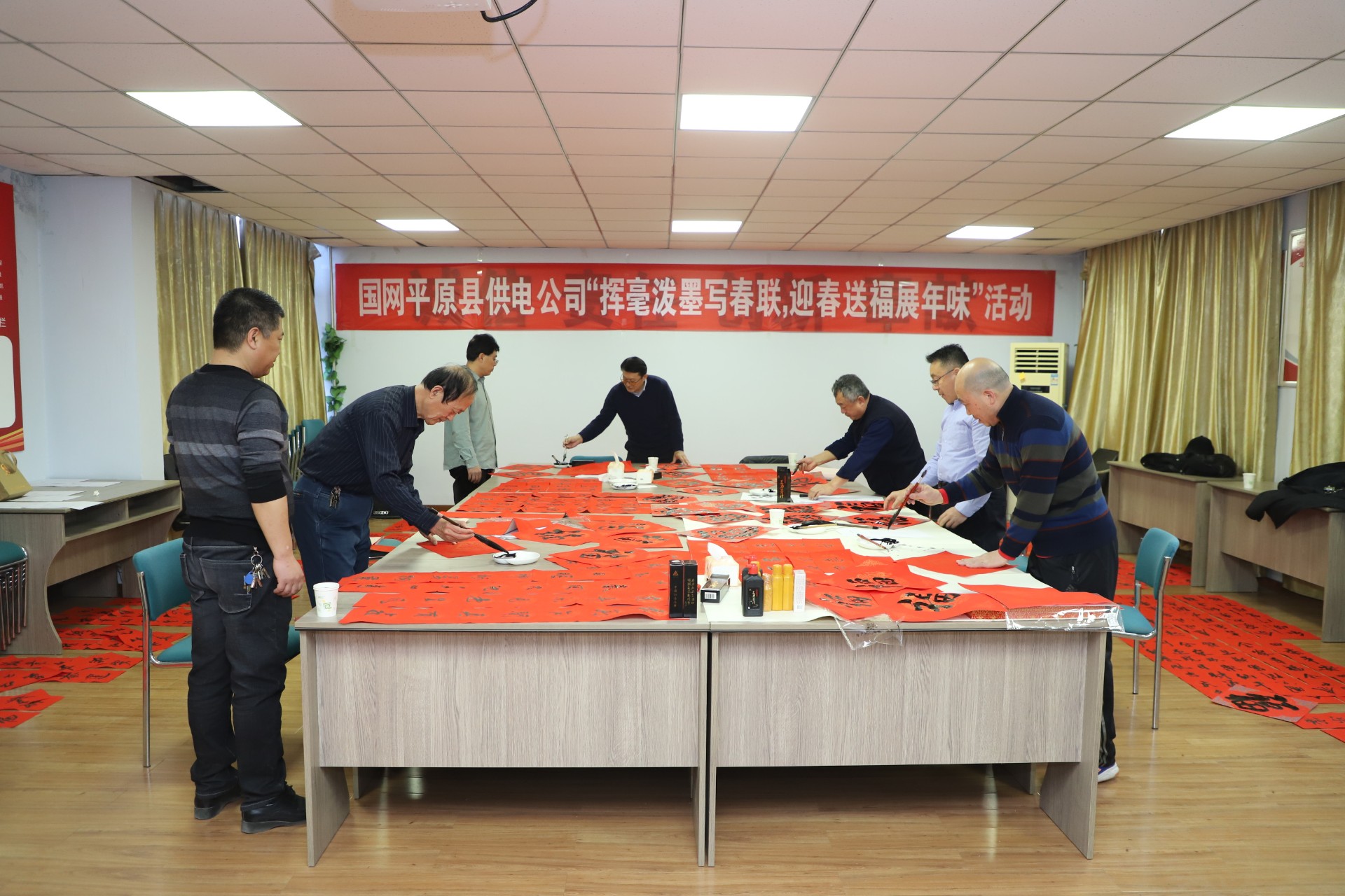 1月6日,国网平原县公司组织开展了“挥毫泼墨写春联,迎春送福展年味”活动。国网平原县公司职工书法爱好者在中茂会议室现场挥毫,共书写200余副对联、福字。