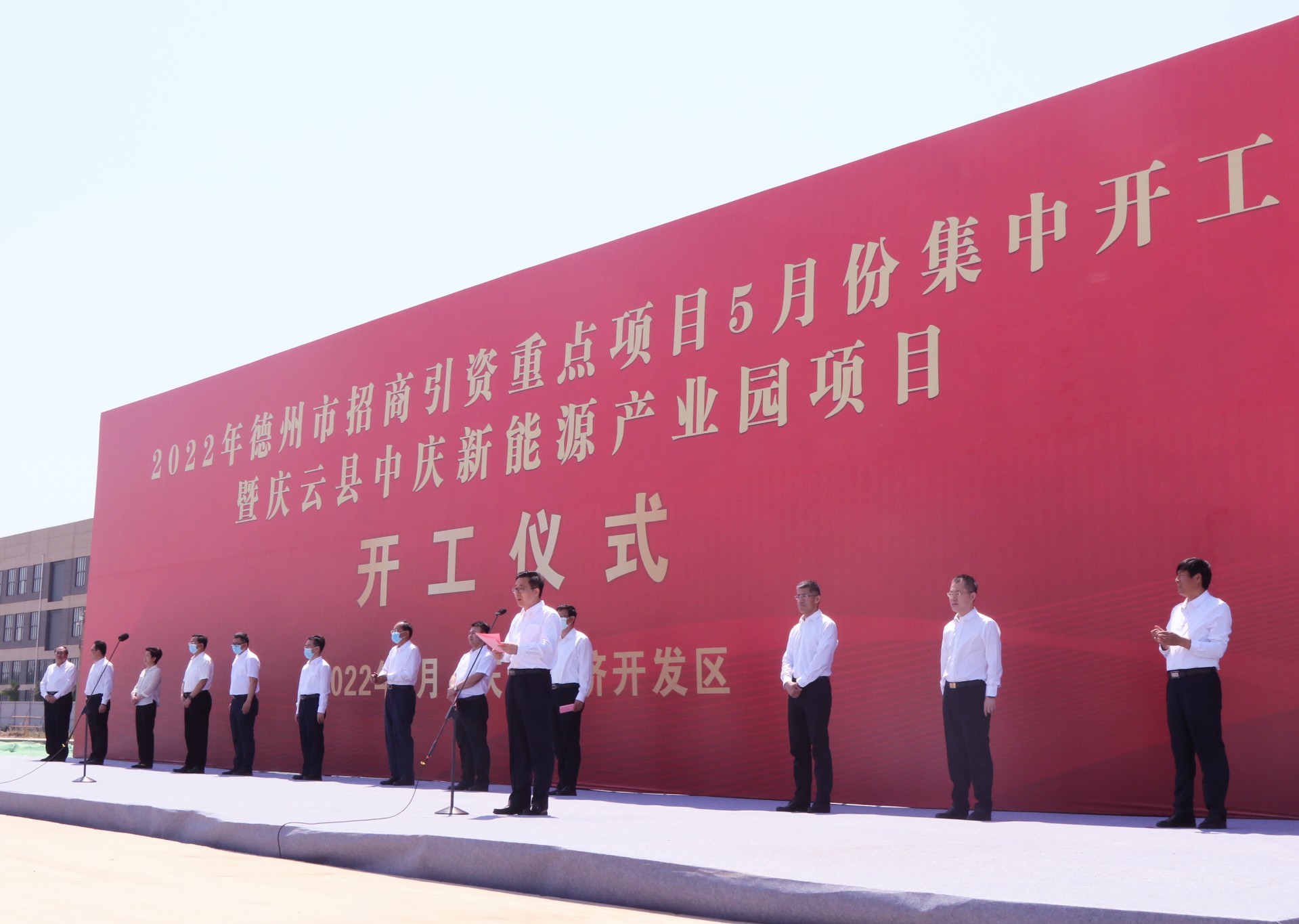 云城奋进,建设如潮。5月22日,2022年德州市招商引资项目5月份集中开工暨庆云县中庆新能源产业园项目开工仪式在庆云举办。德州市委书记田卫东,市领导宿胜、赵学坤,市直有关部门负责人,庆云县领导刘涛、吕德山等四大班子领导出席活动。