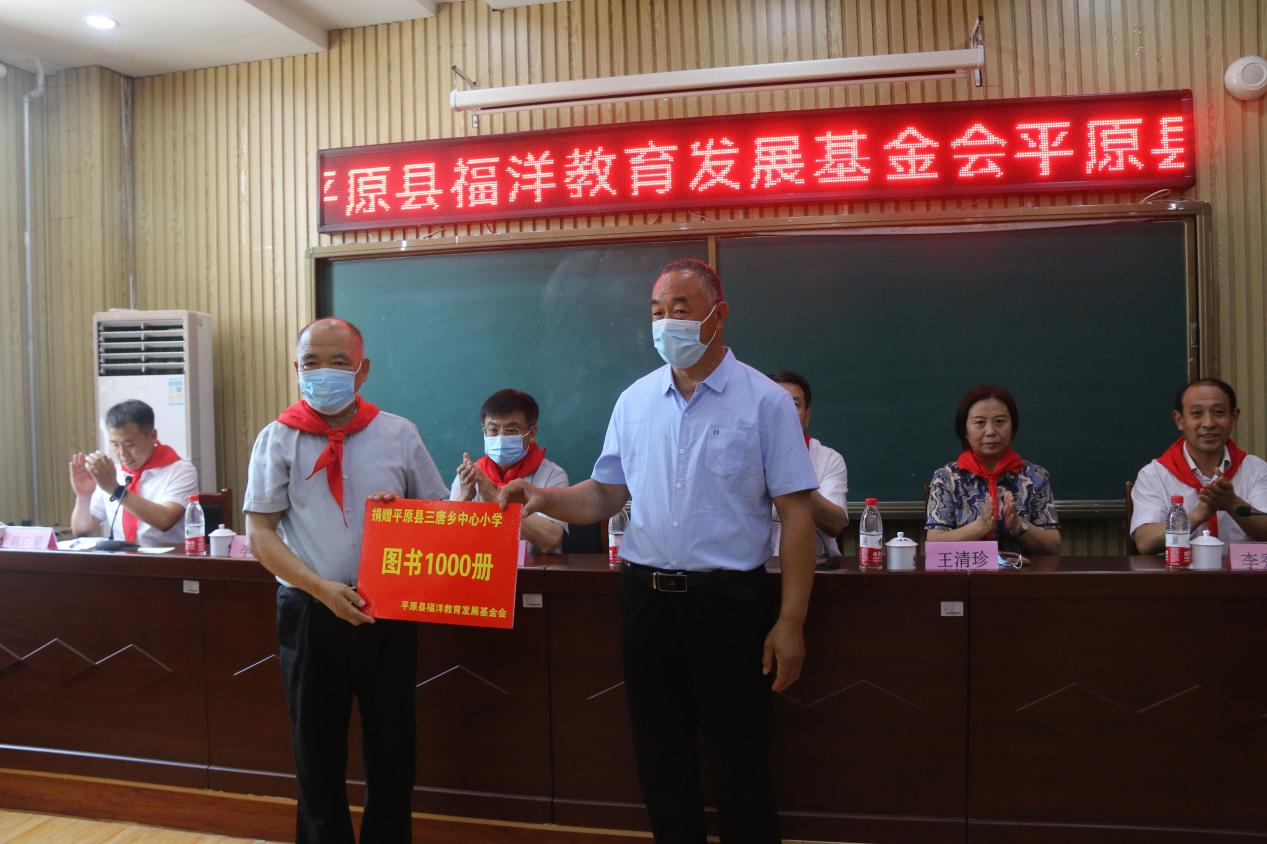 此次活动,山东福洋生物科技股份有限公司为三唐乡中心小学捐赠图书1000册,还为6名贫困儿童捐助了衣物;平原县女子创业者协会为学生捐赠了书包100个。