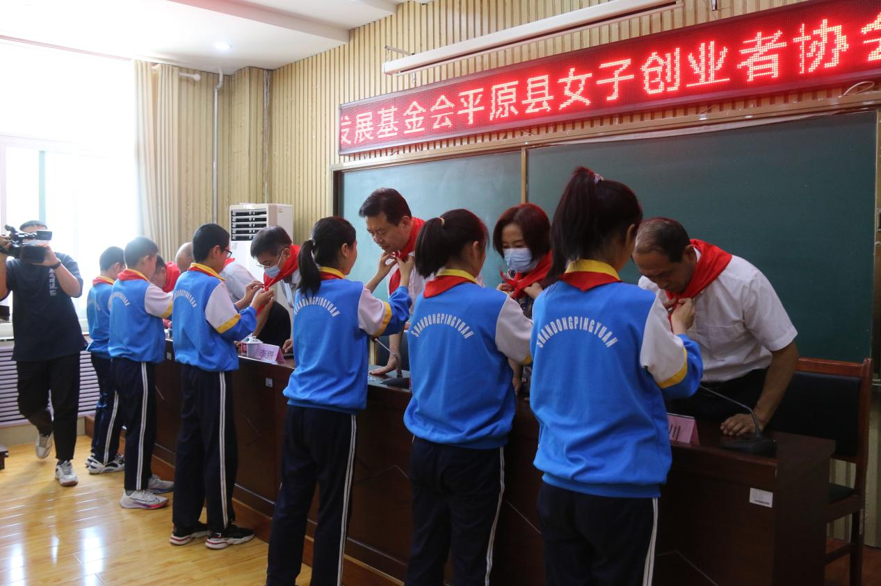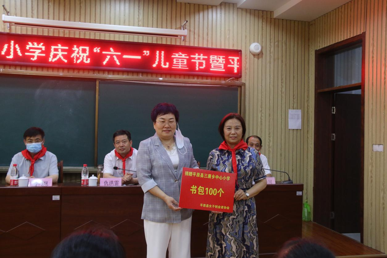 平原县女子创业者协会为学校捐赠学生书包