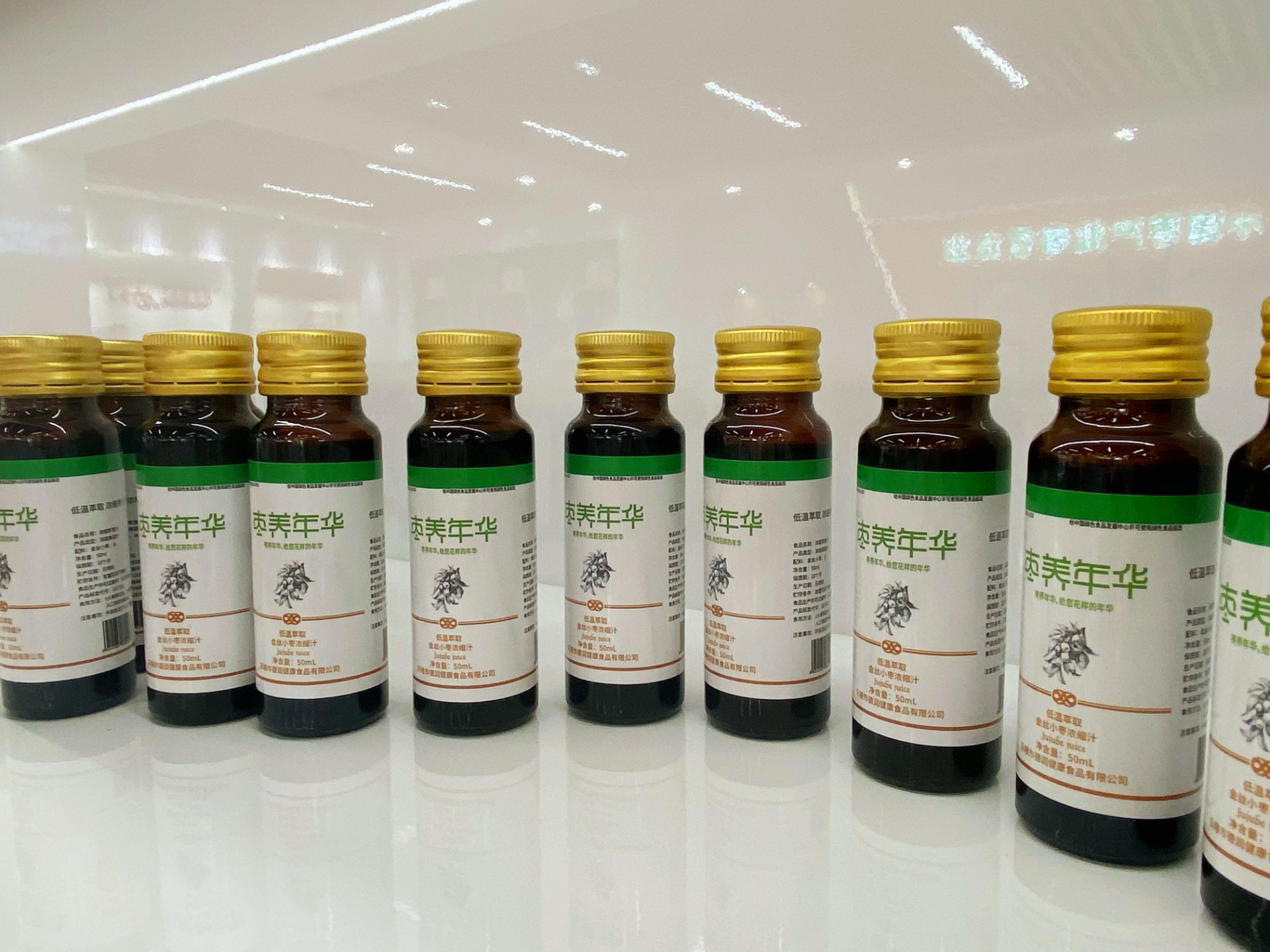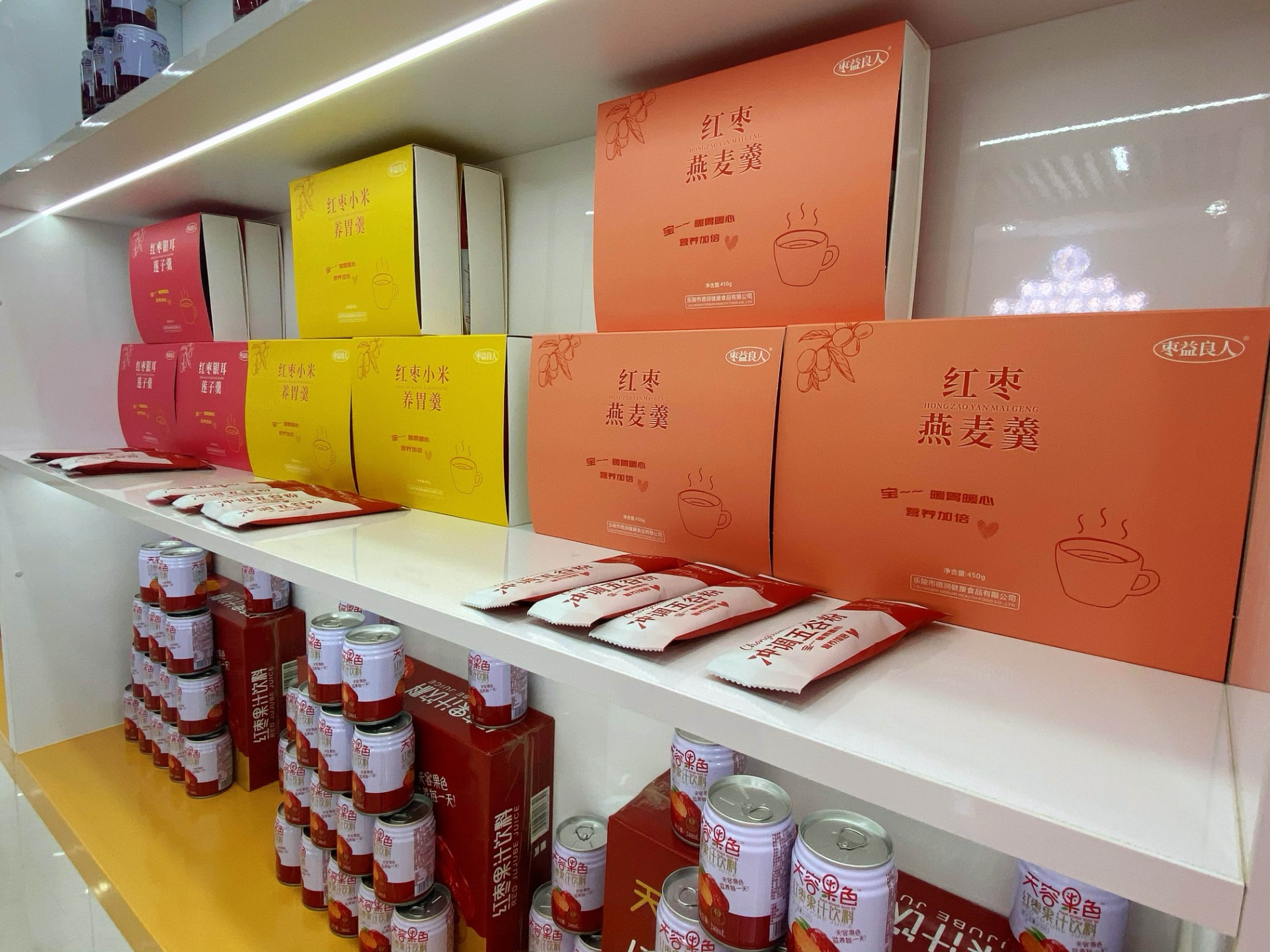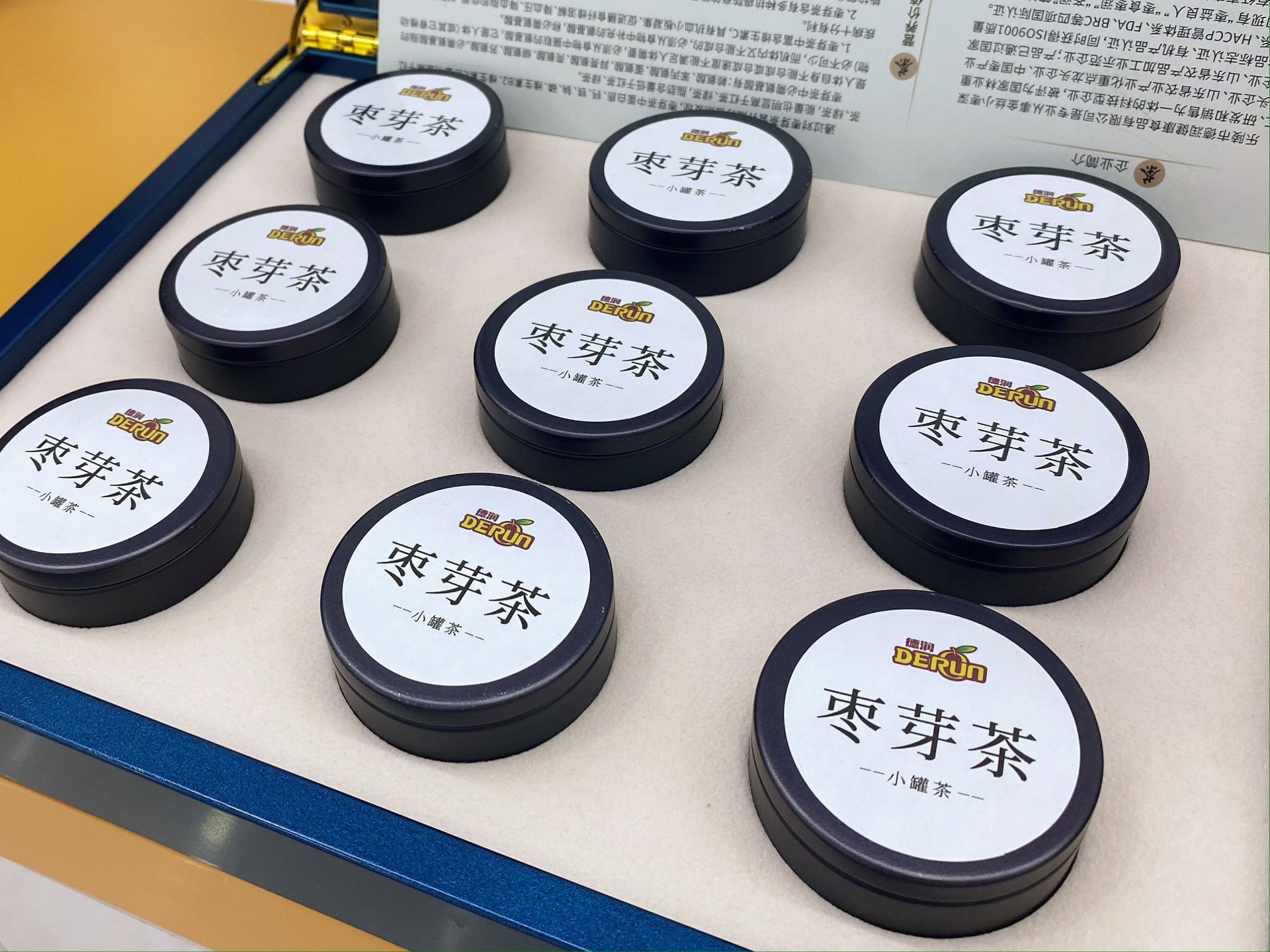 红枣浓缩汁、红枣复合草本饮品、黑化枣酒、红枣莲子羹、枣花蜜、枣芽茶......在德润健康食品有限公司的展览厅里,记者看到该公司研发的产品以深加工为主,并且系列种类很多,不同于传统形式的小枣加工,在口味和食用形式上做了很大的创新,迎合了如今快节奏的生活模式和人们日益增长的丰富味觉需求。“现在很多年轻人工作太忙顾不上吃早餐,我们的红枣羹汤系列开盒即食,营养、美味、健康又方便”德润健康食品有限公司行政经理王姣姣介绍。