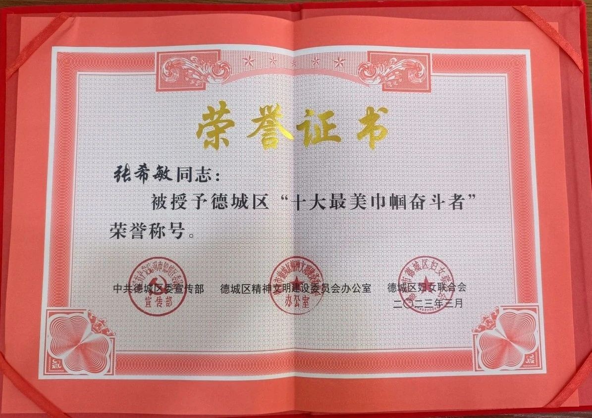 为充分展示新时代德城女性在经济、政治、文化、社会、生态文明建设和疫情防控中作出的突出贡献,3月7日在“三八”国际劳动妇女节即将来临之际,由中共德城区宣传部、德城区精神文明建设委员会、德城区妇女联合会联合主办的“巾帼铿锵 不负韶华”的颁奖会议上,德州市眼视光与眼镜协会、英翔眼镜总经理张希敏获“十大最美巾帼奋斗者”荣誉称号。