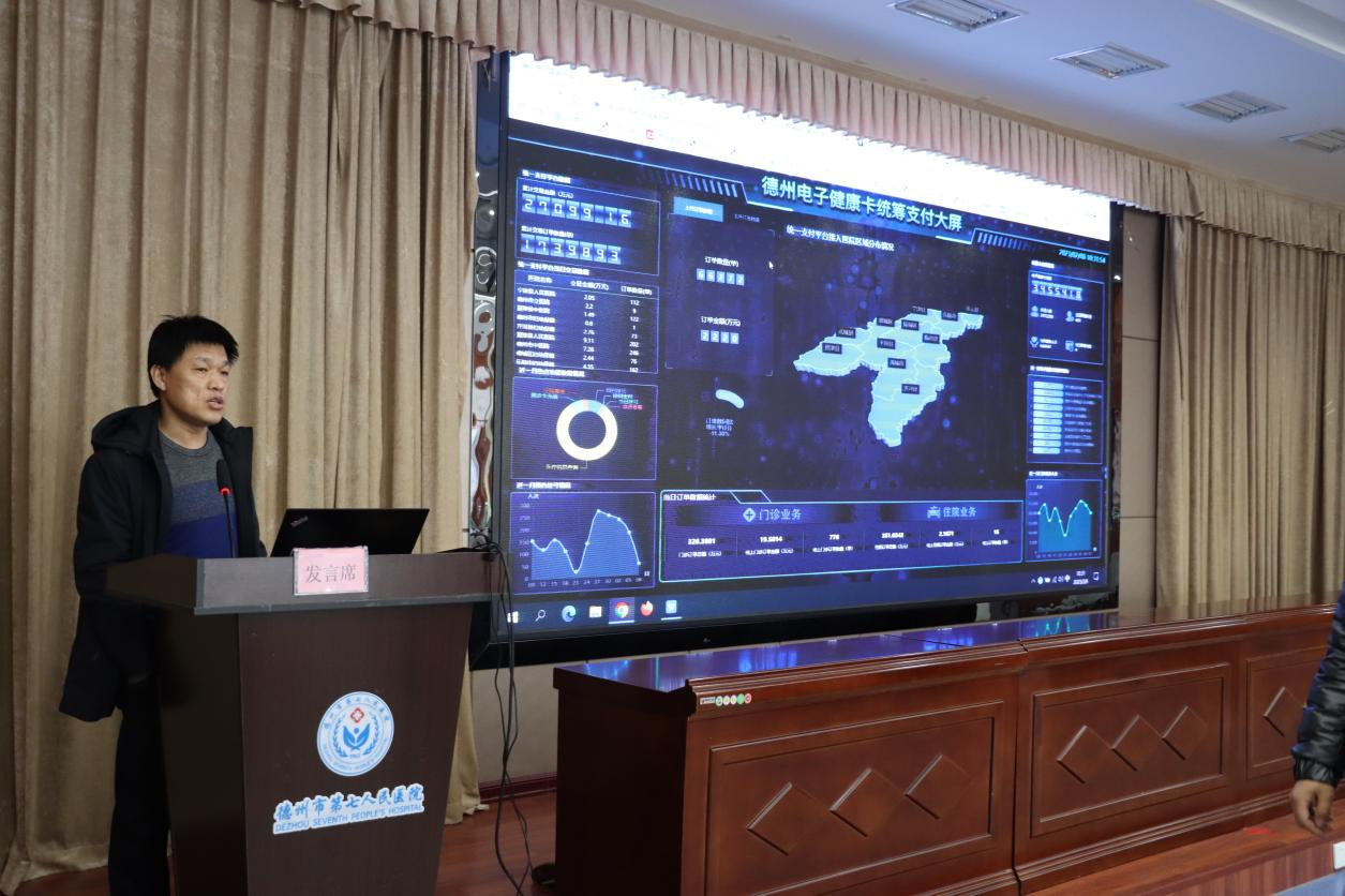座谈会上,陈志兴从“互联网+医疗健康”惠民便民服务平台、电子健康卡统筹支付平台等方面向调研组作详细汇报。王正福展示以“德州医疗”为服务端口的预约挂号、就诊卡充值、跨院支付的电子健康卡统筹支付平台使用流程。
