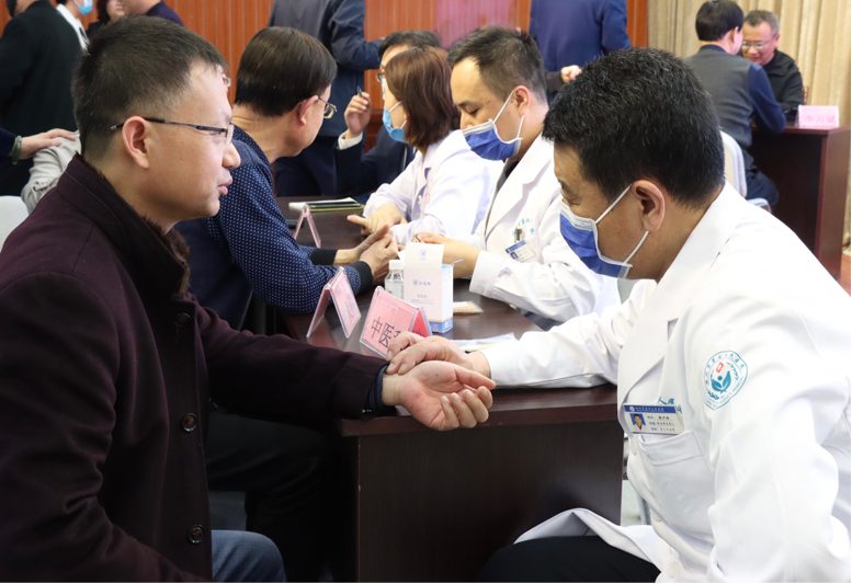 3月25日,德州市健康管理协会第八组走进德州市第七人民医院,开展“弘扬中医传统文化 倡导健康养生理念”主题的交流参观座谈活动。德州市政协原副主席、市委统战部原部长、市健康管理协会会长陈建国,市人大原副主任夏荣恩,市政协原副主席孙路军,市人大原副主任麻然华,市政协原副主席陈焕然等40余人出席,会议由市健康管理协会第八组组长李建民主持,医院党委书记翟学军,党委副书记、院长庄霞等院领导班子成员,相关科室人员参加。