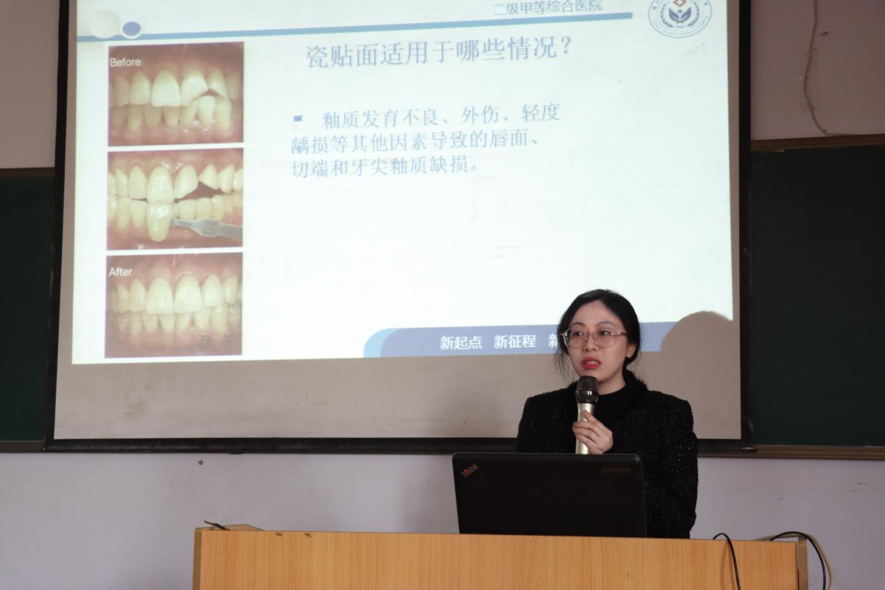 口腔科副主任张萱围绕瓷贴面的临床应用、牙周疾病的修复、种植牙的修复三方面普及口腔健康知识,为提高青少年口腔健康素养水平,引导形成自主自律的口腔健康行为起到良好促进作用。