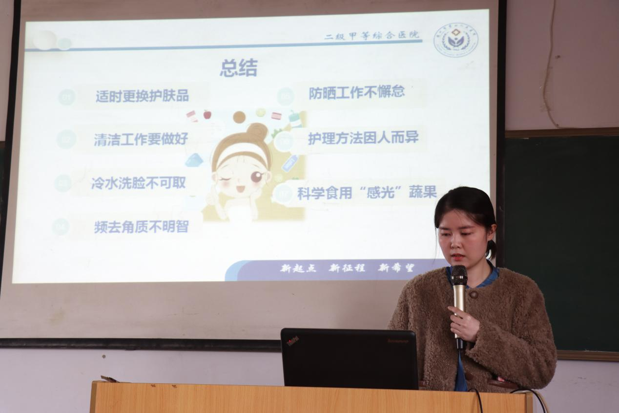 皮肤科医师许柳结合实际案例向同学们普及春季护肤小常识,使同学们了解皮肤医学知识,提升其皮肤疾病管理意识,养成科学护肤习惯。