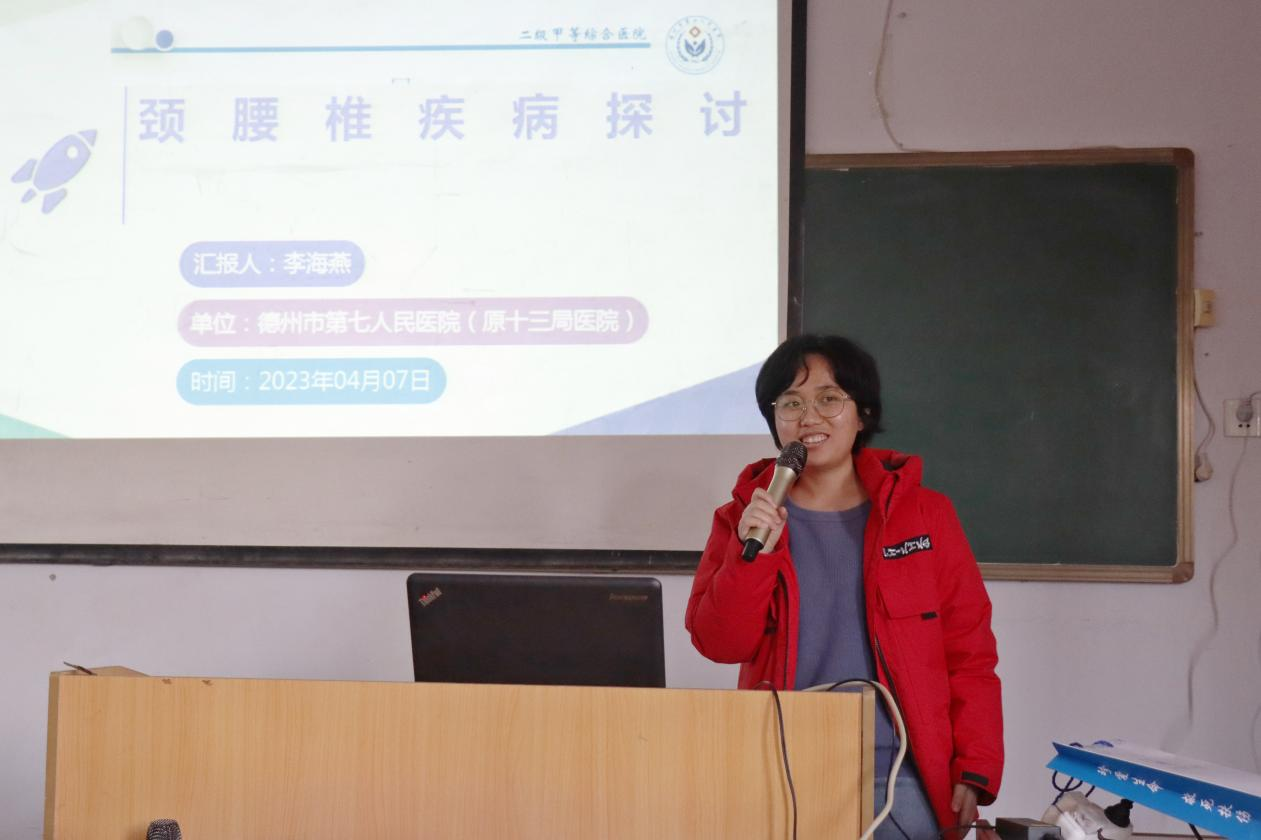中医针灸科医师李海燕用通俗易懂的语言从中西医对颈腰椎疾病的认识、临床特点、治疗现状等方面展开讲解,重点向同学们普及日常生活中有效预防颈椎疾病的发生的方法,纠正其学习生活中的不良姿势。