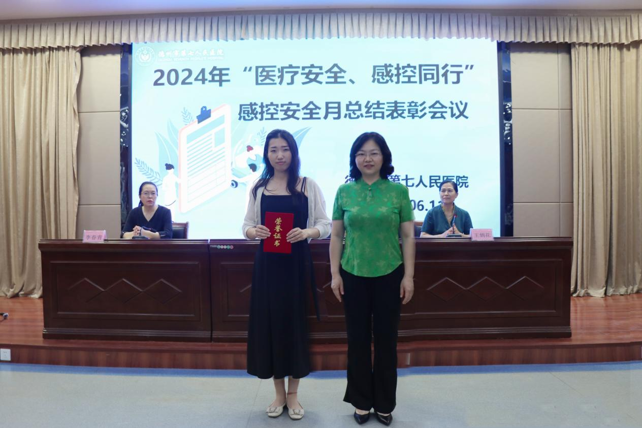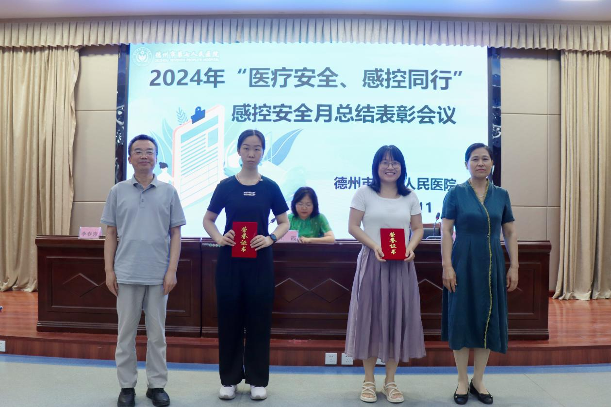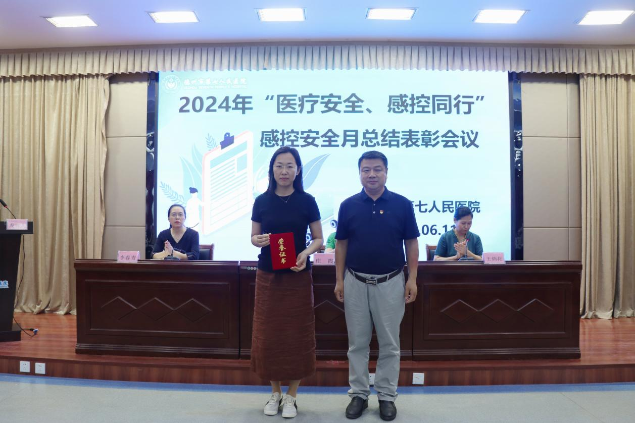 为进一步强化医务人员感控理念,推动医院感控文化建设,6月11日,德州市第七人民医院召开“医疗安全、感控同行”安全月总结表彰会议。医院党委书记翟学军,党委副书记、院长庄霞及院领导班子成员出席会议,党委委员、副院长王炳花主持,各科室主任、护士长等人员参加。