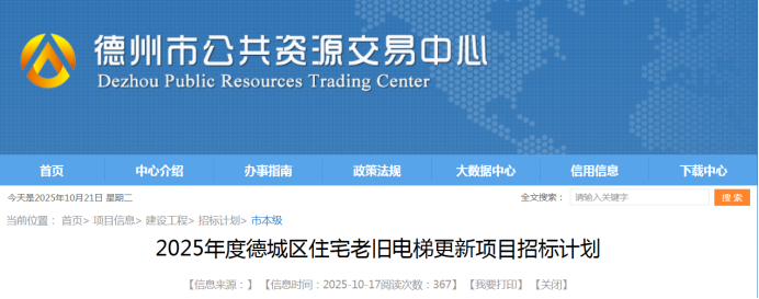 10月17日,德州市德城区城乡建设局对外发布《2025 年度德城区住宅老旧电梯更新项目招标计划》,标志着区域内老旧电梯升级改造工作即将启动。
