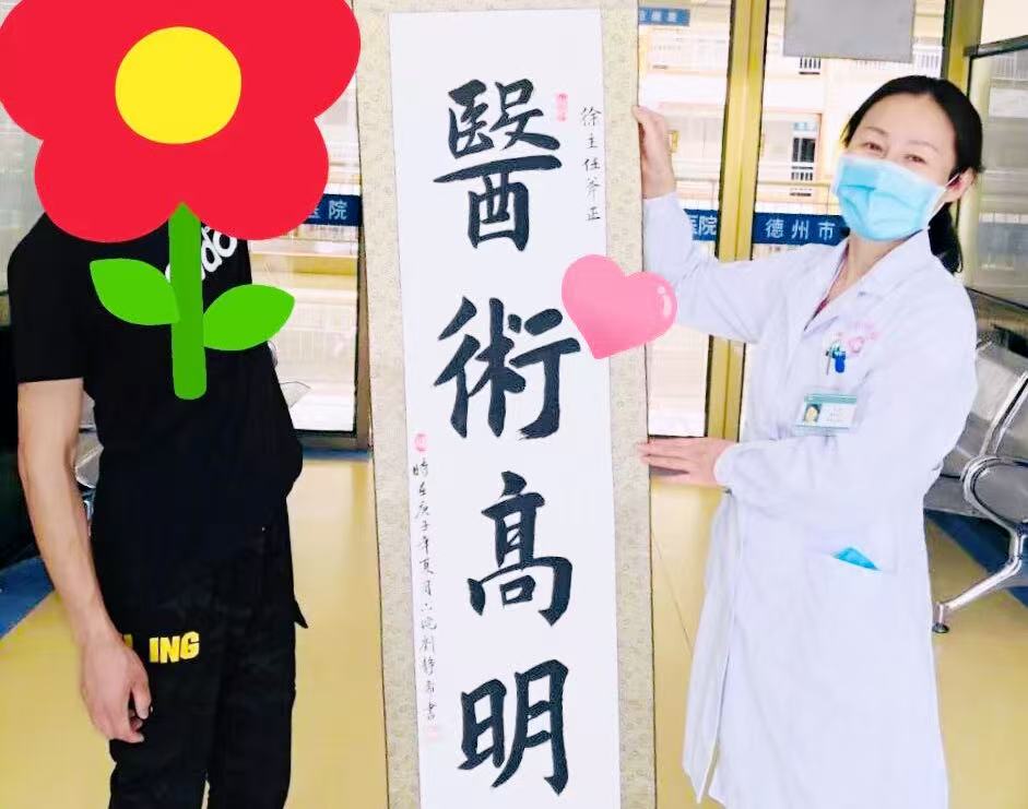 当眼部纱布缓缓揭开,清晰的世界第一次完整呈现在小吴眼前,他望向徐红,哽咽着说:“我能喊您阿姨吗?”徐红紧紧握住他的手,眼眶泛红:“好孩子,当然可以啦!”重见光明的小吴渐渐变得开朗自信,学习刻苦努力,后来如愿考上了理想的大学,毕业后顺利找到了满意的工作。2020年5月25日,小吴带着自己写的“医术高明”书法作品来到徐红的诊室,以感谢当年的再造之恩。