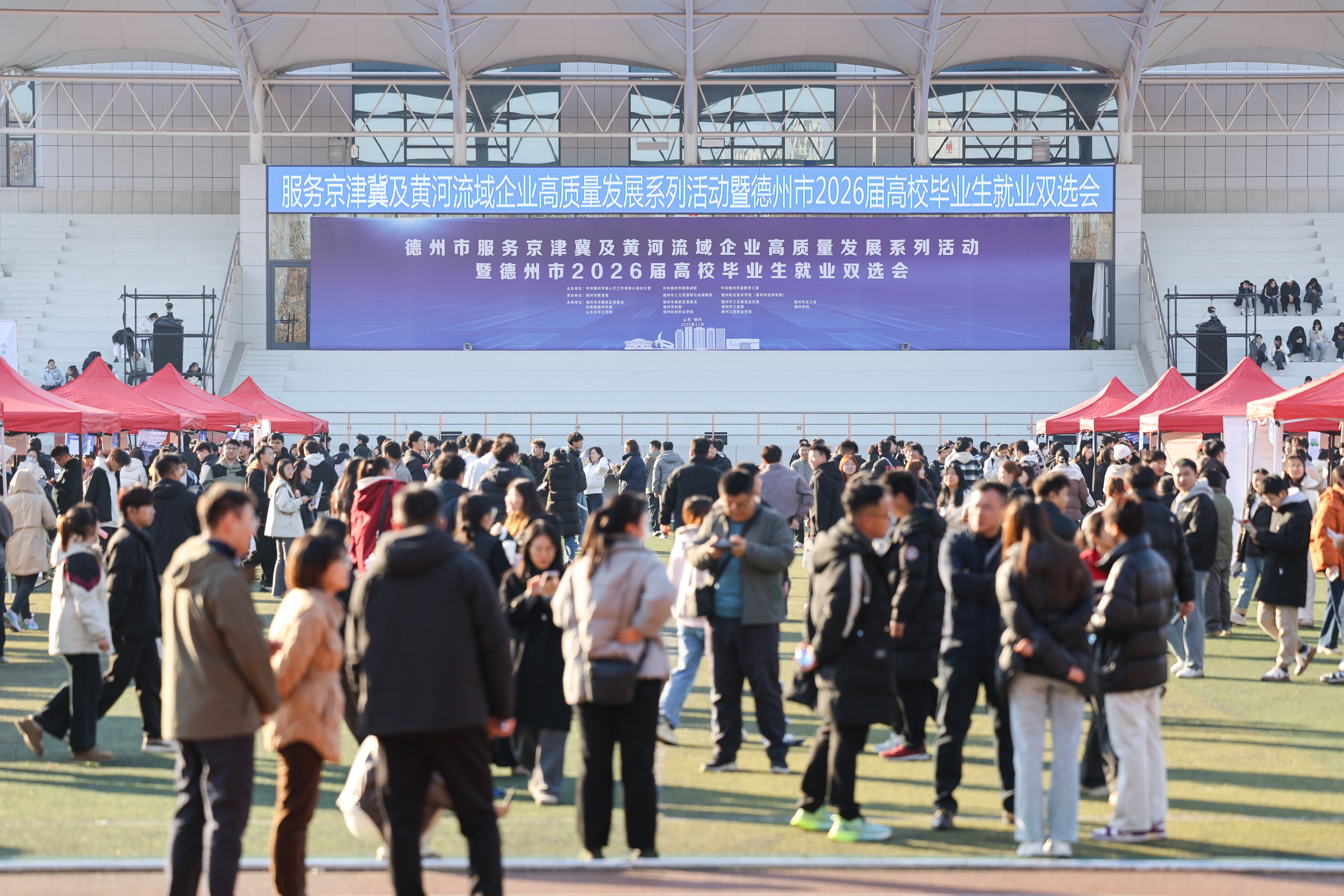 11月21日,德州市2026届高校毕业生就业双选会在德州职业技术学院体育场举办。500余家优质企业携1.5万余个岗位参会,覆盖京津冀、黄河流域重点区域及德州13条标志性产业链核心领域,吸引1万余名高校毕业生到场双向对接,现场供需互动热烈。