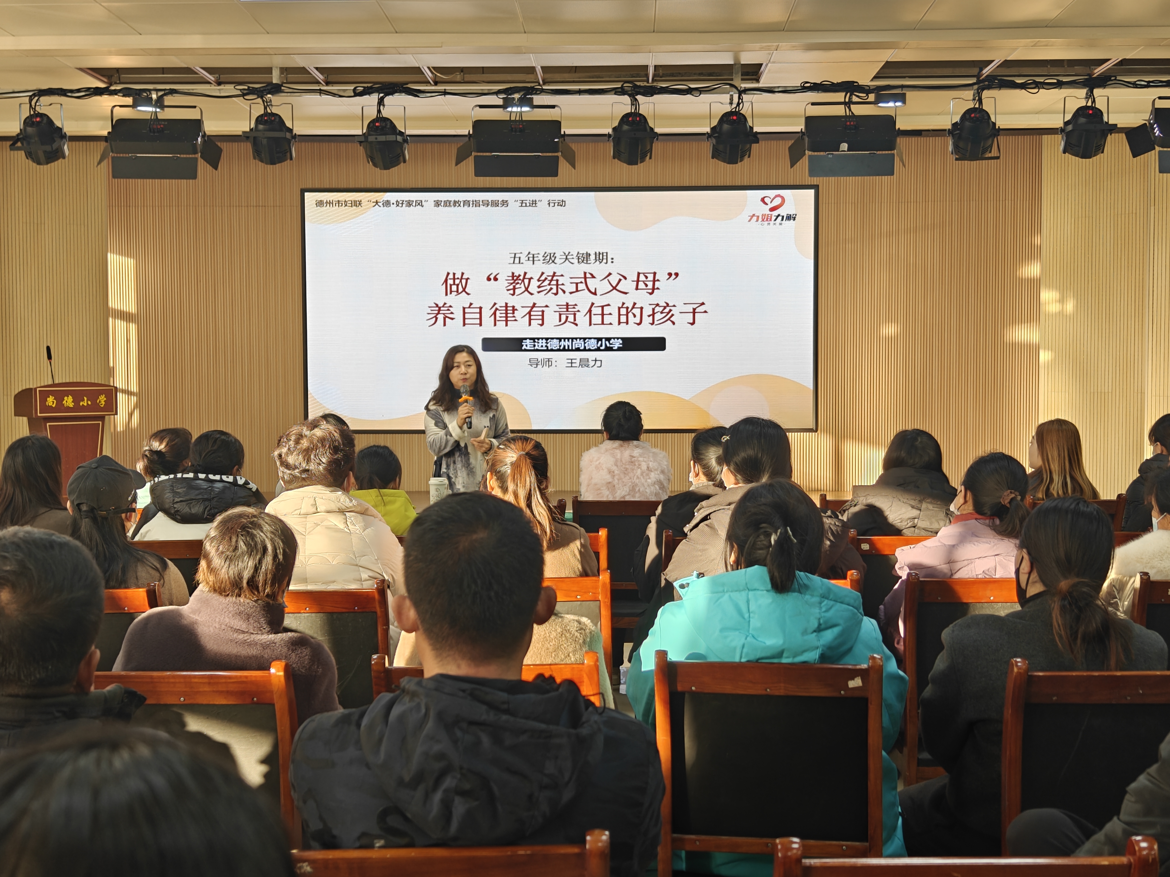 12月3日,德州天衢新区尚德小学特邀心理专家王晨力,开展“做‘教练式父母’养自律有责任的孩子”主题讲座,全校五年级家长代表齐聚学校报告厅参与活动。