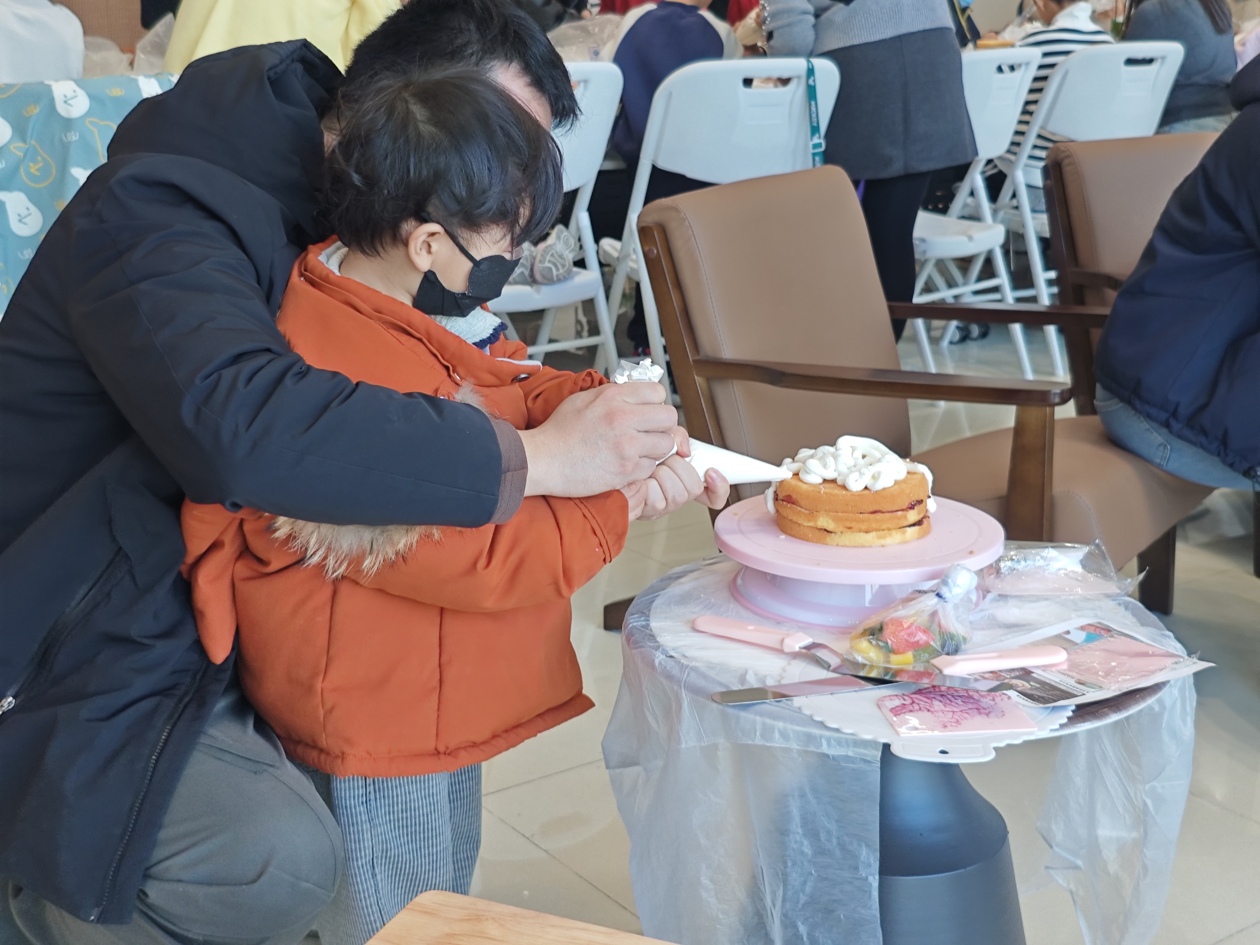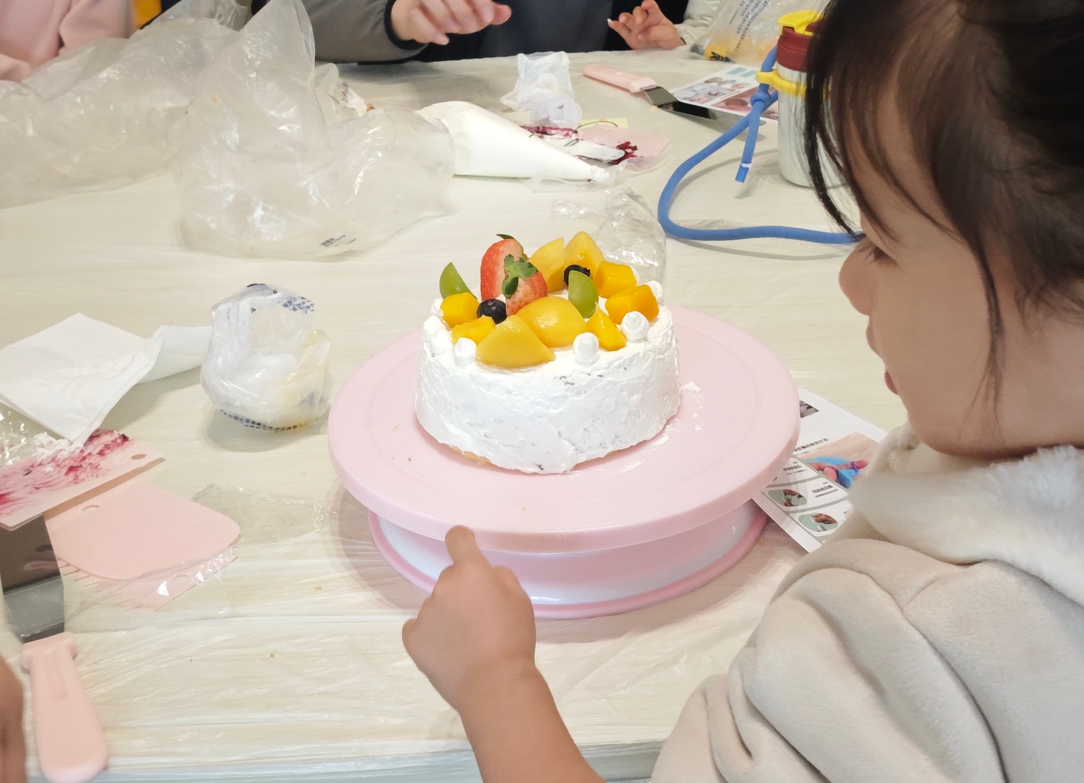 活动过程中满是治愈的小瞬间:有妈妈举着手机,记录下孩子专注的模样;有爸爸大手握着宝宝小手一起为蛋糕装饰奶油;有孩子们托着自己做好的“专属蛋糕”拉着妈妈合影的;还有说着“宝贝,你人生第一个DIY蛋糕,咱们一起做的,真好”……蛋糕师则全程巡回指导,让大家能安心享受创作的快乐。