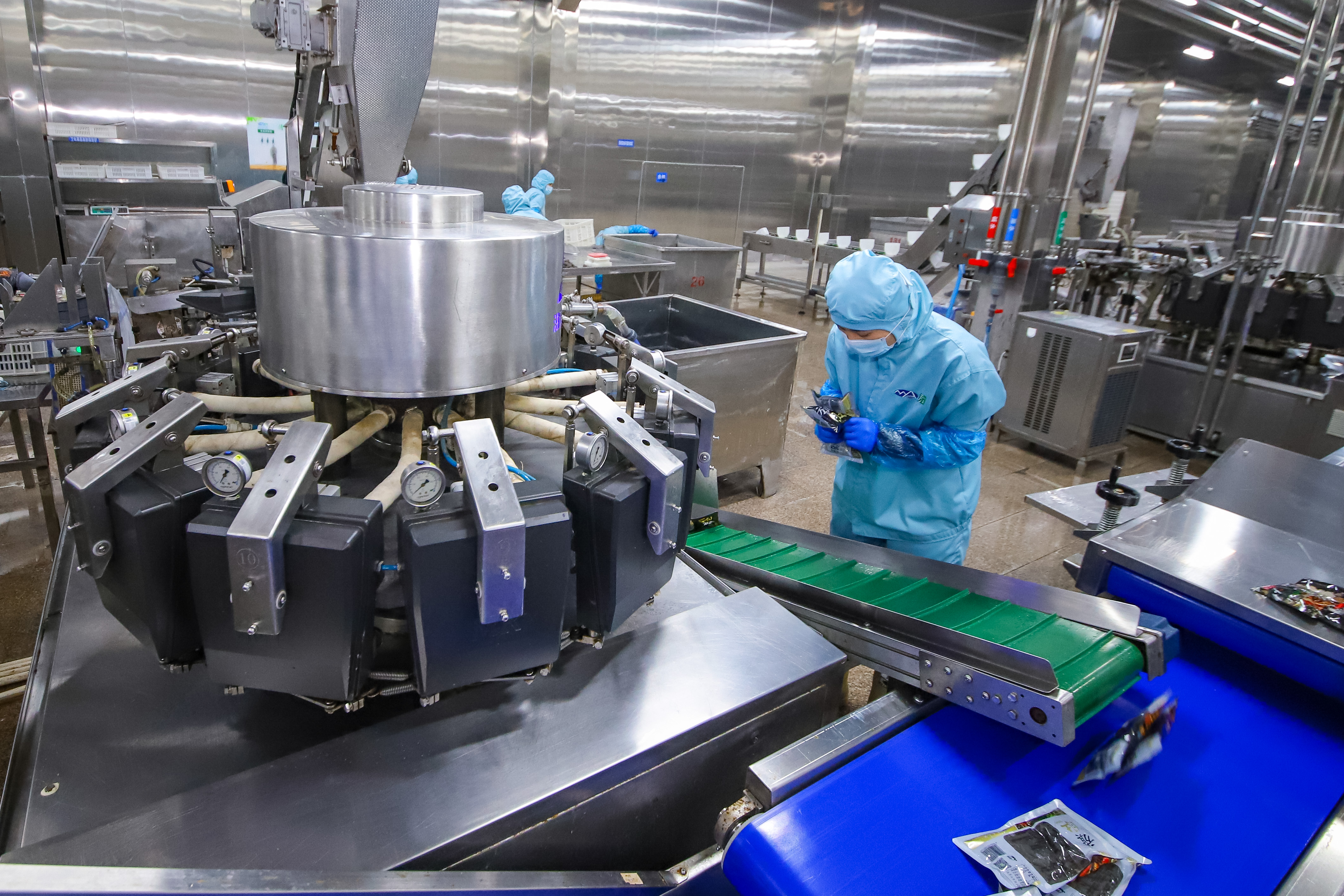 12月18日,在位于山东省乐陵市的山东民安食品股份有限公司,工人在包装生产线上忙碌。新华社发(张鹰 摄)