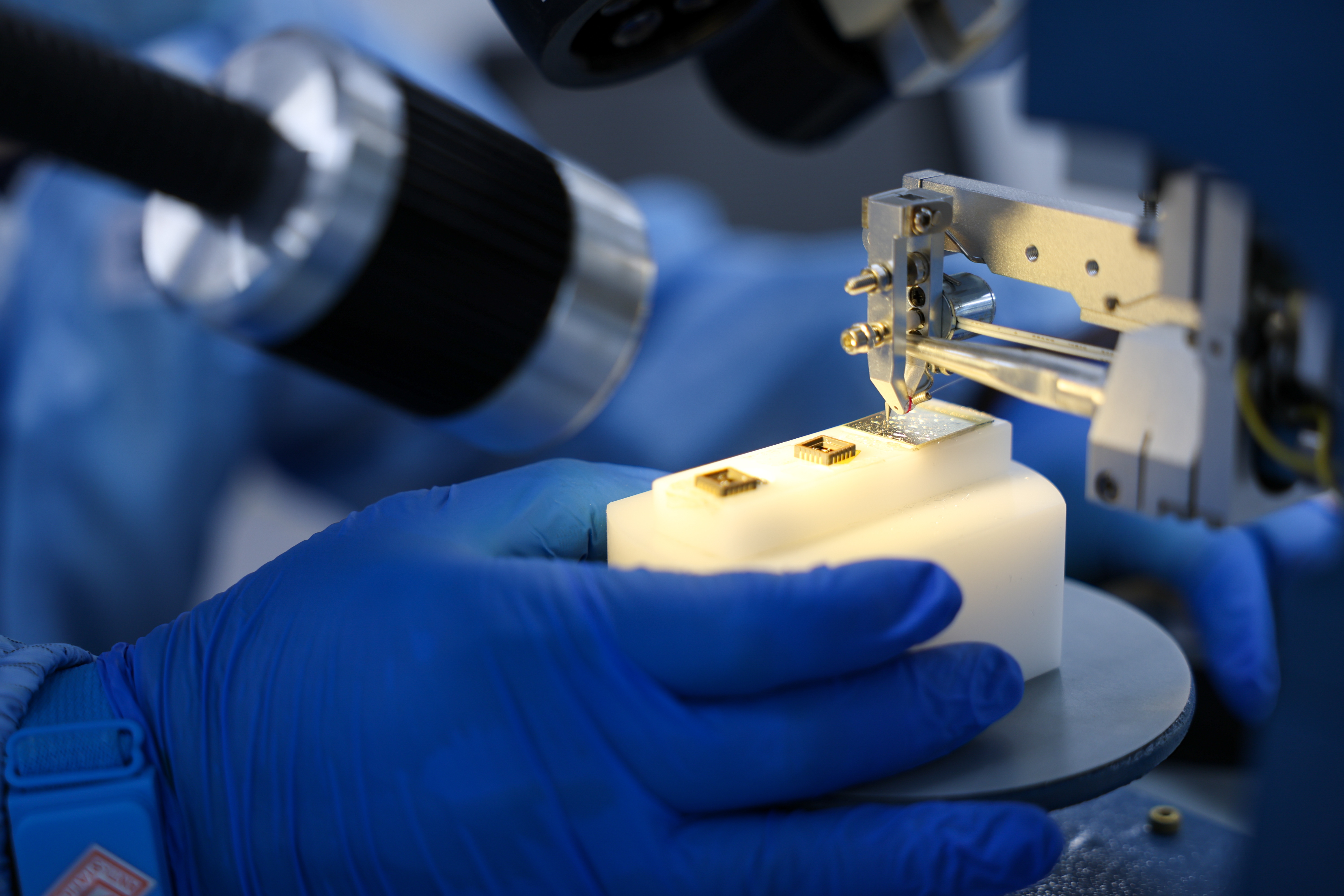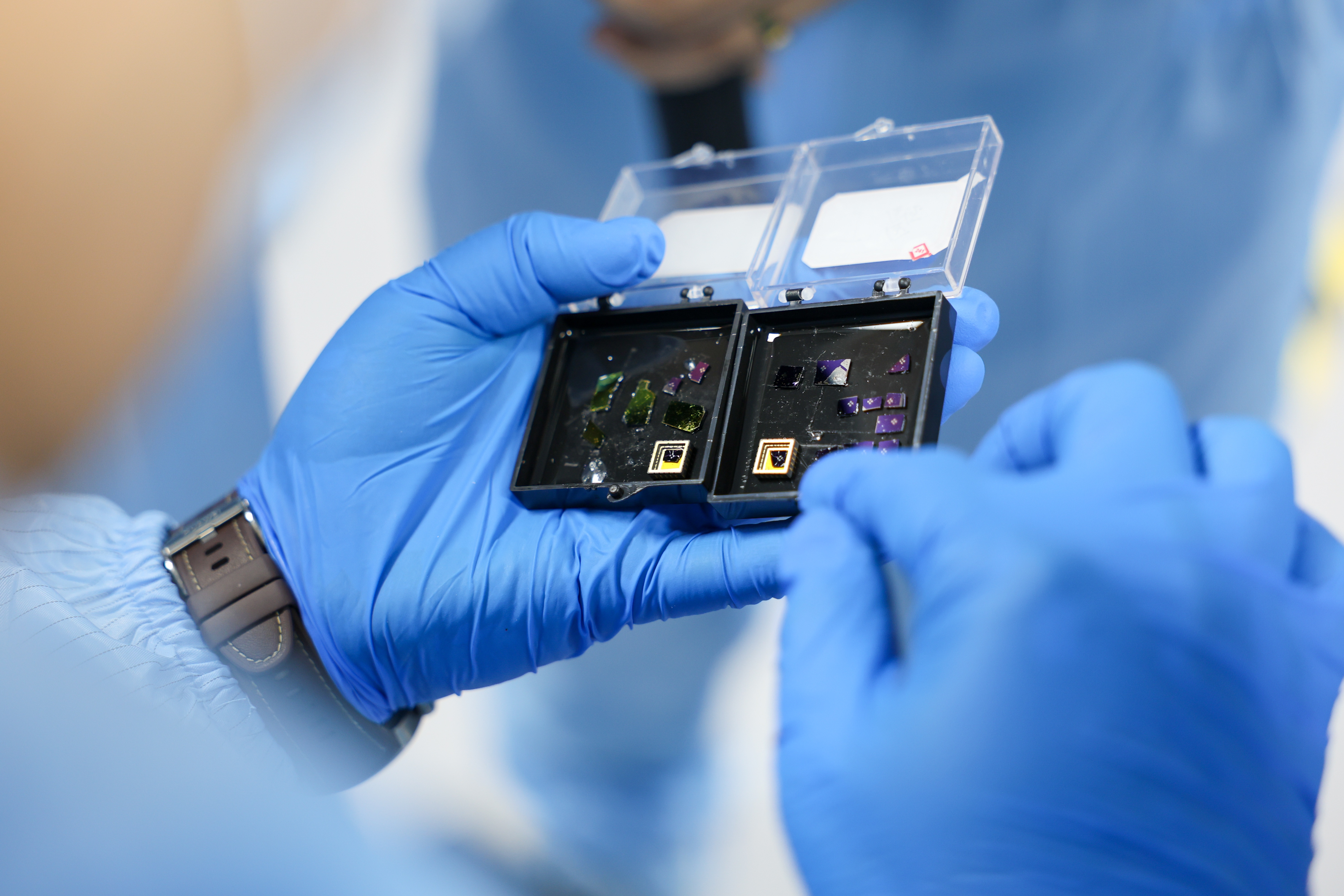 崔健笑着拿出两个小巧的小盒子,语气中难掩骄傲地向记者介绍:“大家看,这就是我们学院首批自主制造的芯片。”盒子里的芯片个头不大,表面泛着柔和的金属光泽,被他小心翼翼地托在掌心。