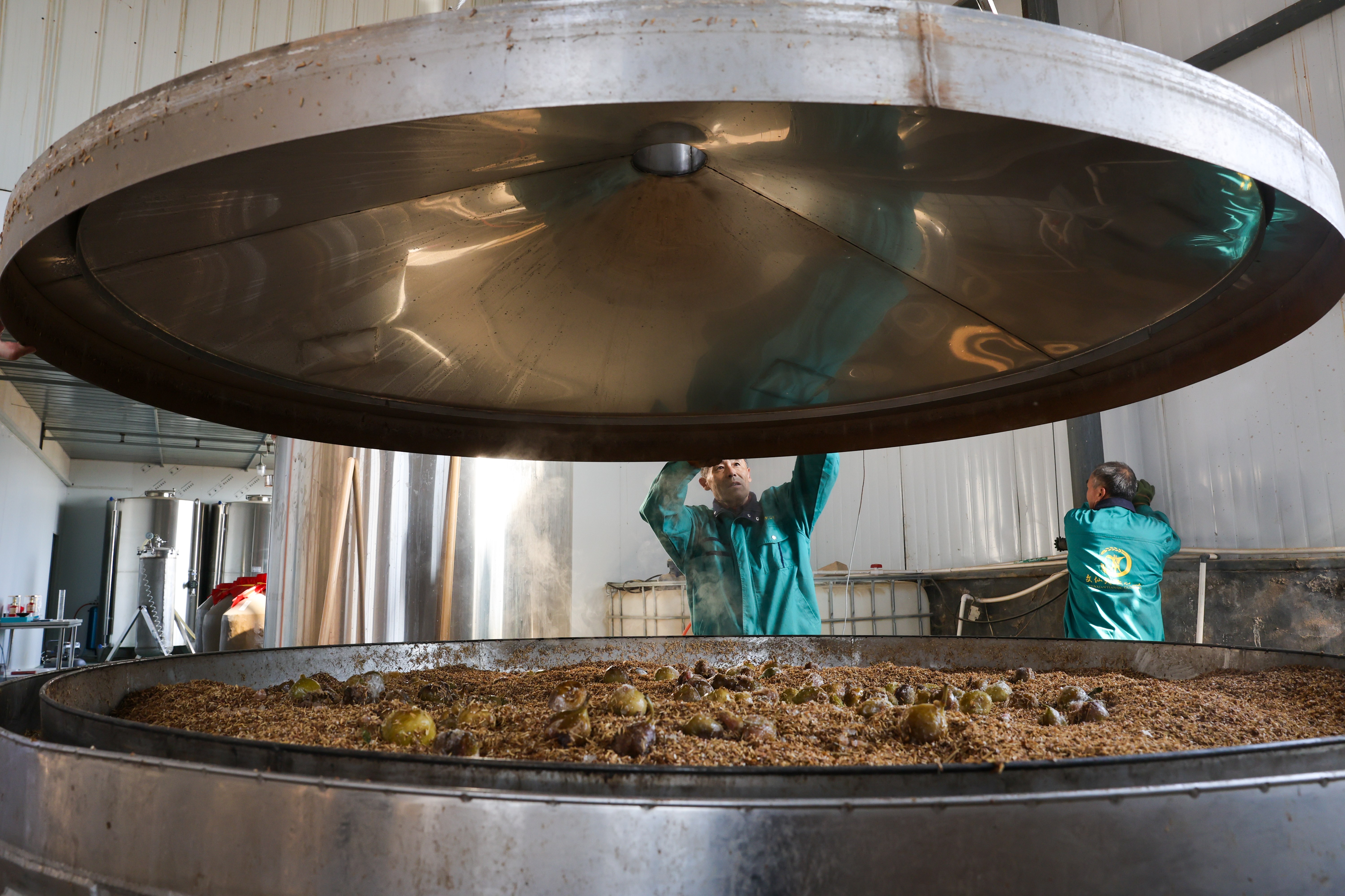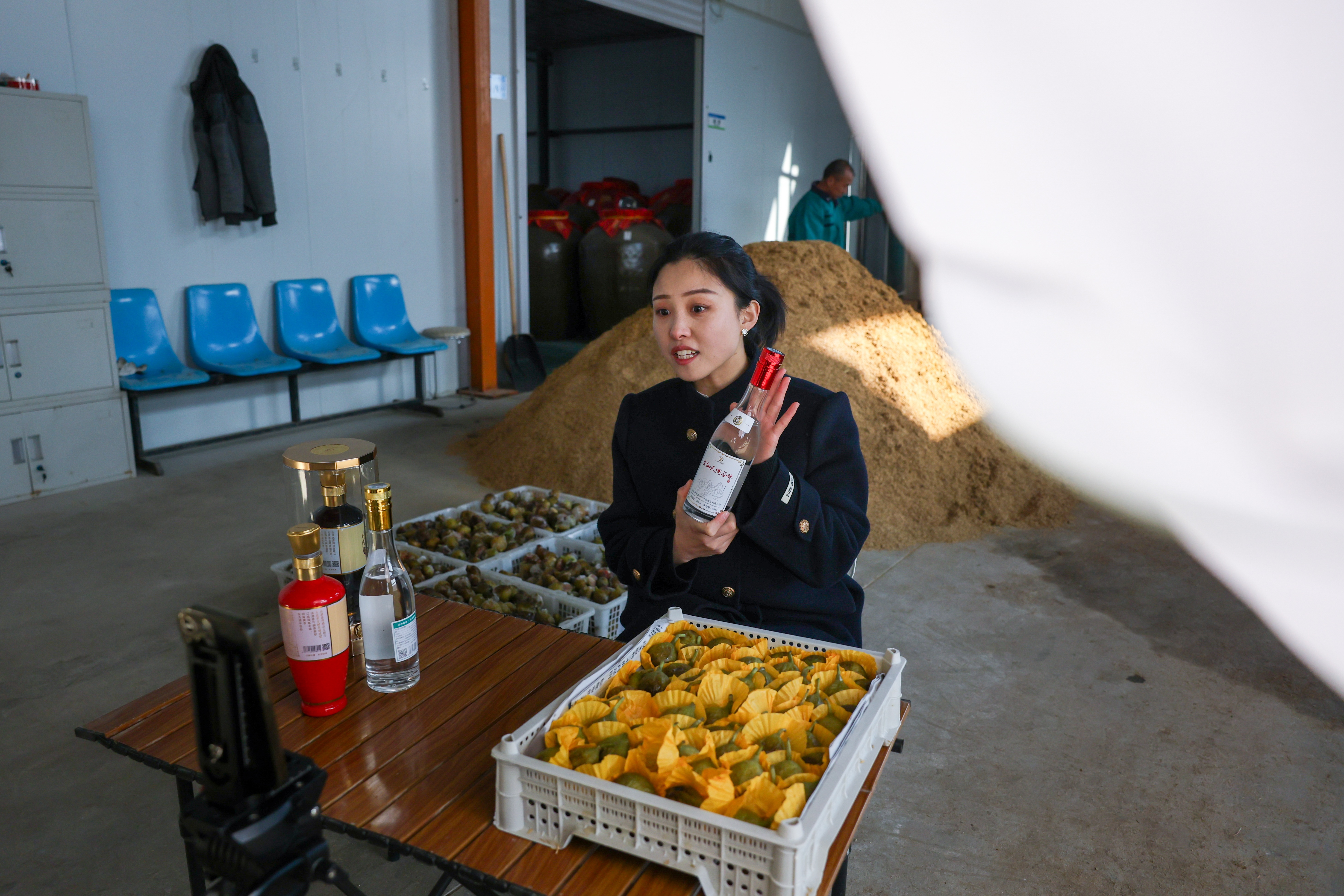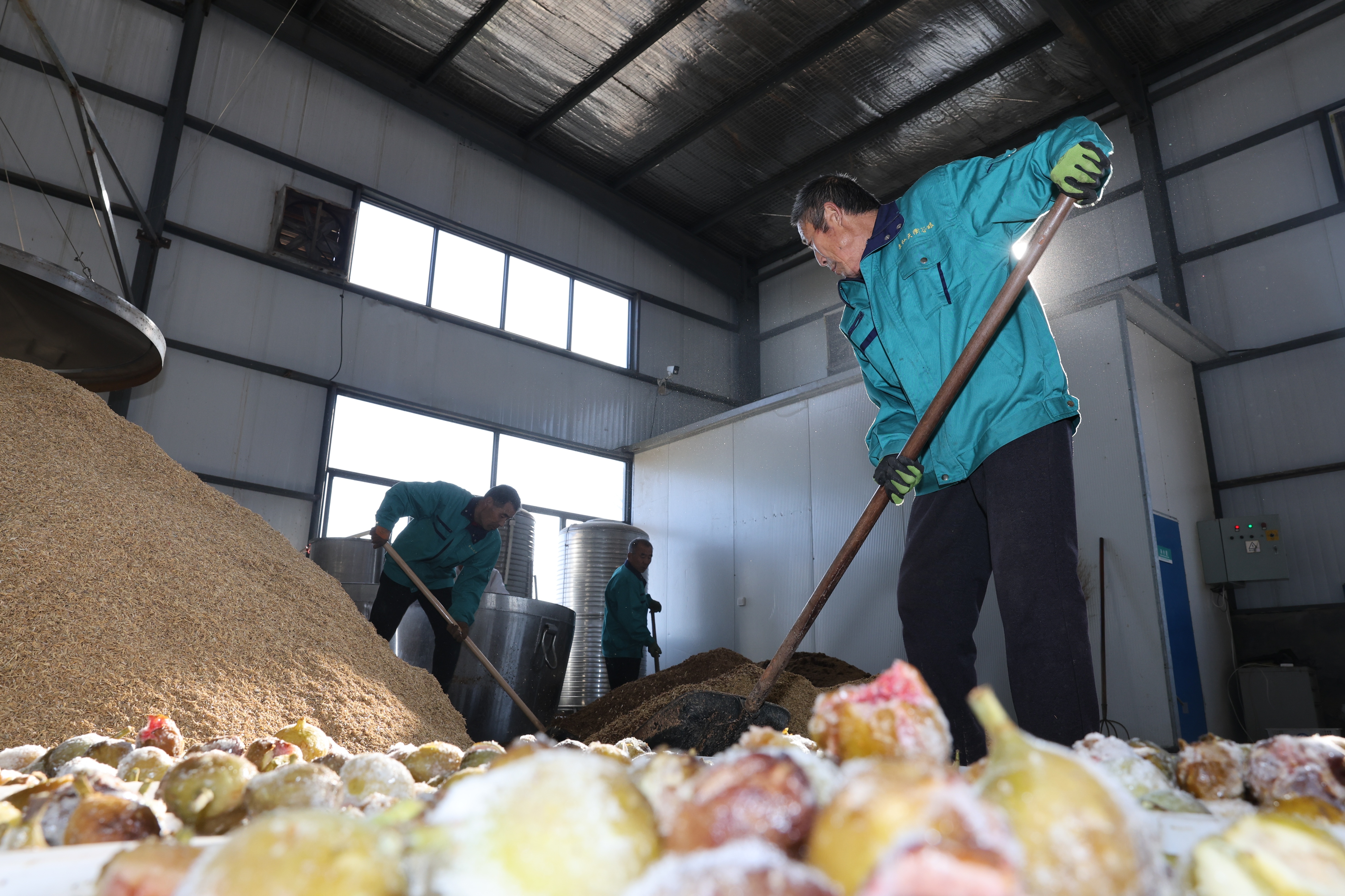 冬日的德州天衢新区赵虎镇马庄村,寒风料峭,但福耘德水果种植家庭农场的加工厂房内却暖意融融、酱香与果香交织弥漫。工人们正按照标准化工艺翻拌发酵原料,直播间里,农场负责人孙玉嬛手持一瓶琥珀色佳酿,向网友细致介绍:“这是我们的‘天衢谷酿’无花果酒,由拥有40余年酿造经验的白建欣师傅亲自指导工艺,每一口都藏着田园的香甜与老酿艺的醇厚!”