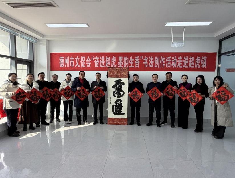 天衢新区党群工作部文明办主任董运,赵虎镇党委副书记、武装部部长许珂,赵虎镇副镇长宋艳蕊,德州市文促会艺术顾问齐延庆,副会长费志振、李丽荣,以及市文促会内设部门有关代表张阔、王德军、王连和、李萍、陈绍静、吕云霞等参加活动。此次调研还同步开展“奋进赵虎,墨韵生香”主题书画创作活动,以笔墨定格赵虎镇文化风采、丰富乡村文化内涵,进一步搭建起政企协同发展平台,为该镇深挖文化资源、推动农文旅融合、实现文化振兴注入强劲动力。(张阔)