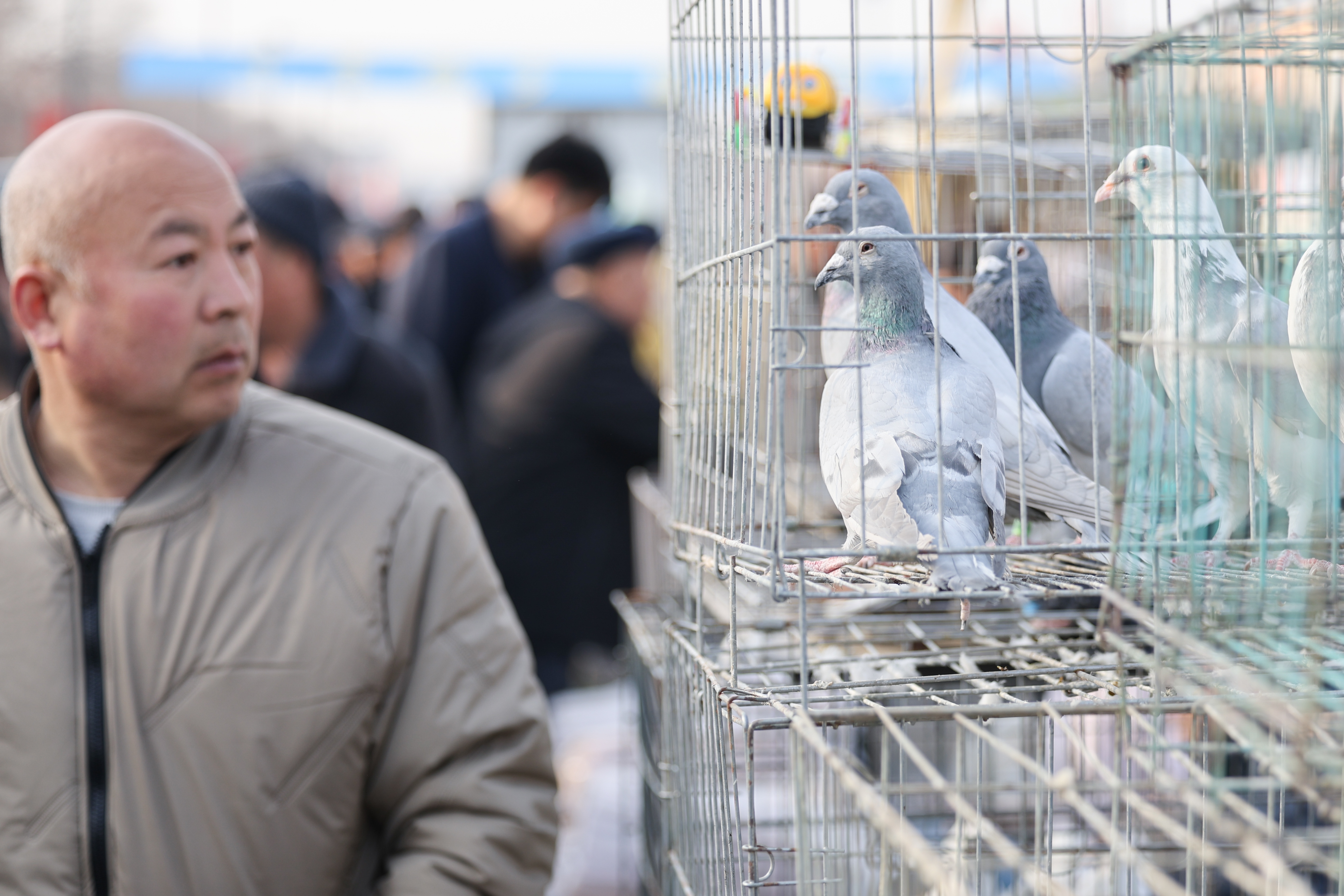 现场各地鸽友赏鸽论价、交流驯养心得,客商与市民穿梭其间,各板块均人气旺盛。
