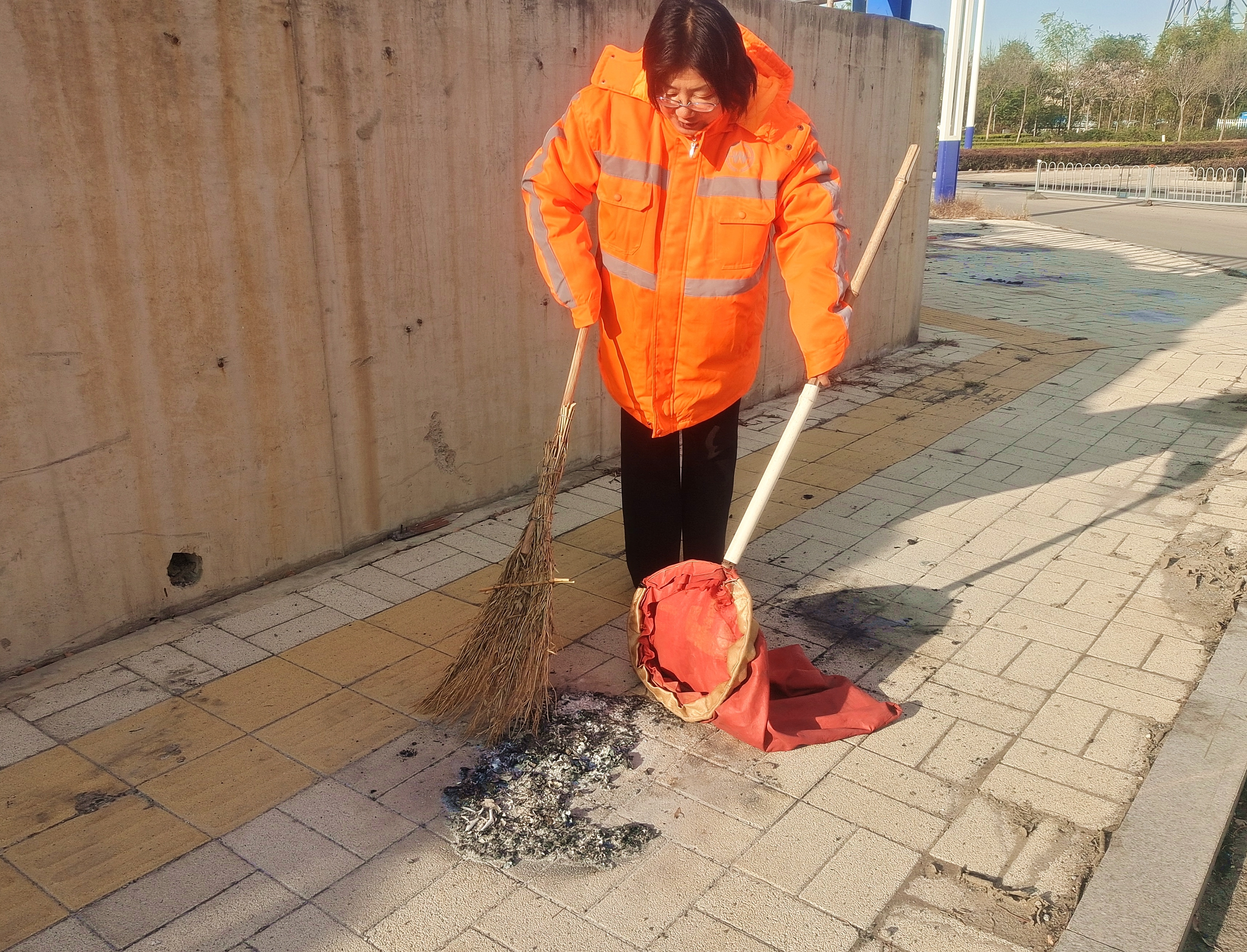在巡查处置上,中心持续推行“一巡查双保洁”工作模式,构建全时段、全覆盖的监管网络。管理人员全员下沉一线,将城区主要交通干线、十字路口等易出现焚烧祭祀的点位列为重点巡查区域,通过不间断巡逻实时掌握祭祀动态;一旦发现路面残留灰烬或污染痕迹,立即启动快速处置流程,确保问题不过夜、污染不扩散。