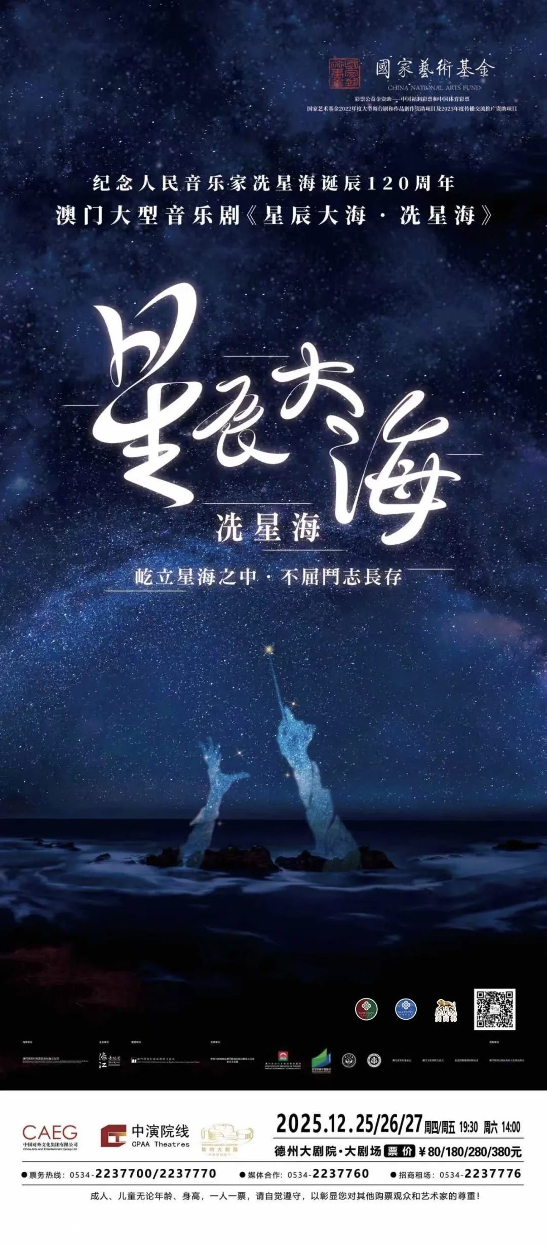 12月25日至27日,两度获国家艺术基金资助的澳门大型原创音乐剧《星辰大海·冼星海》将登陆德州。该剧由粤澳顶尖团队打造,通过多媒体技术还原经典场景,致敬人民音乐家冼星海诞辰120周年,其经典曲目《渔之子》曾亮相澳门回归25周年文艺晚会。