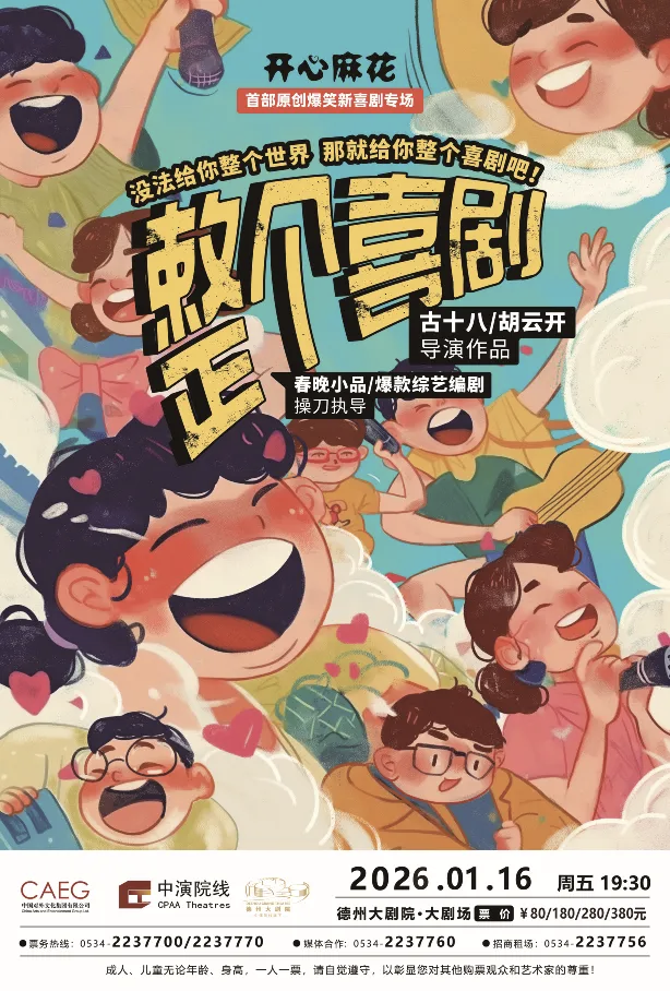 此外,1月10日的《“不能说的秘密”沉浸式烛光音乐会》以浪漫烛光搭配经典曲目,打造治愈氛围;1月16日至17日,开心麻花将连续带来两场爆笑演出——原创互动喜剧《整个喜剧》(8个小品、30余人物、100+笑点)与经典大戏《乌龙山伯爵》(演出超4000场),为观众解锁解压狂欢模式。