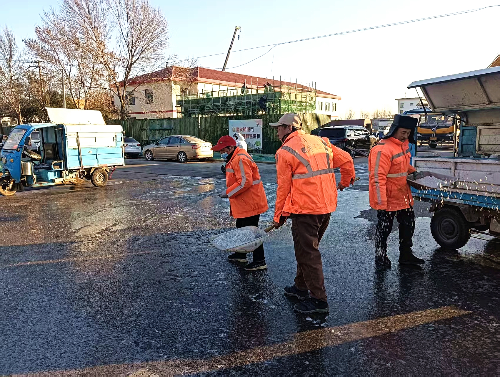 市城管局环境卫生服务中心巡查人员发现隐患后,立即启动应急处置机制,迅速集结保洁作业力量,携带融雪剂赶赴现场开展处置工作。作业过程中,严格遵循“科学撒布、全面覆盖”原则,对结冰路段均匀撒布融雪剂,同时辅以人工清理残留冰块,加速融雪剂作用发挥,确保除冰效果。经过1小时的紧张作业,现场结冰路面全部融化,道路恢复正常通行秩序。此次处置行动,环卫工人以“快响应、快处置”的高效工作作风,及时化解路面结冰风险,切实保障了辖区道路通行安全与市民出行安全。