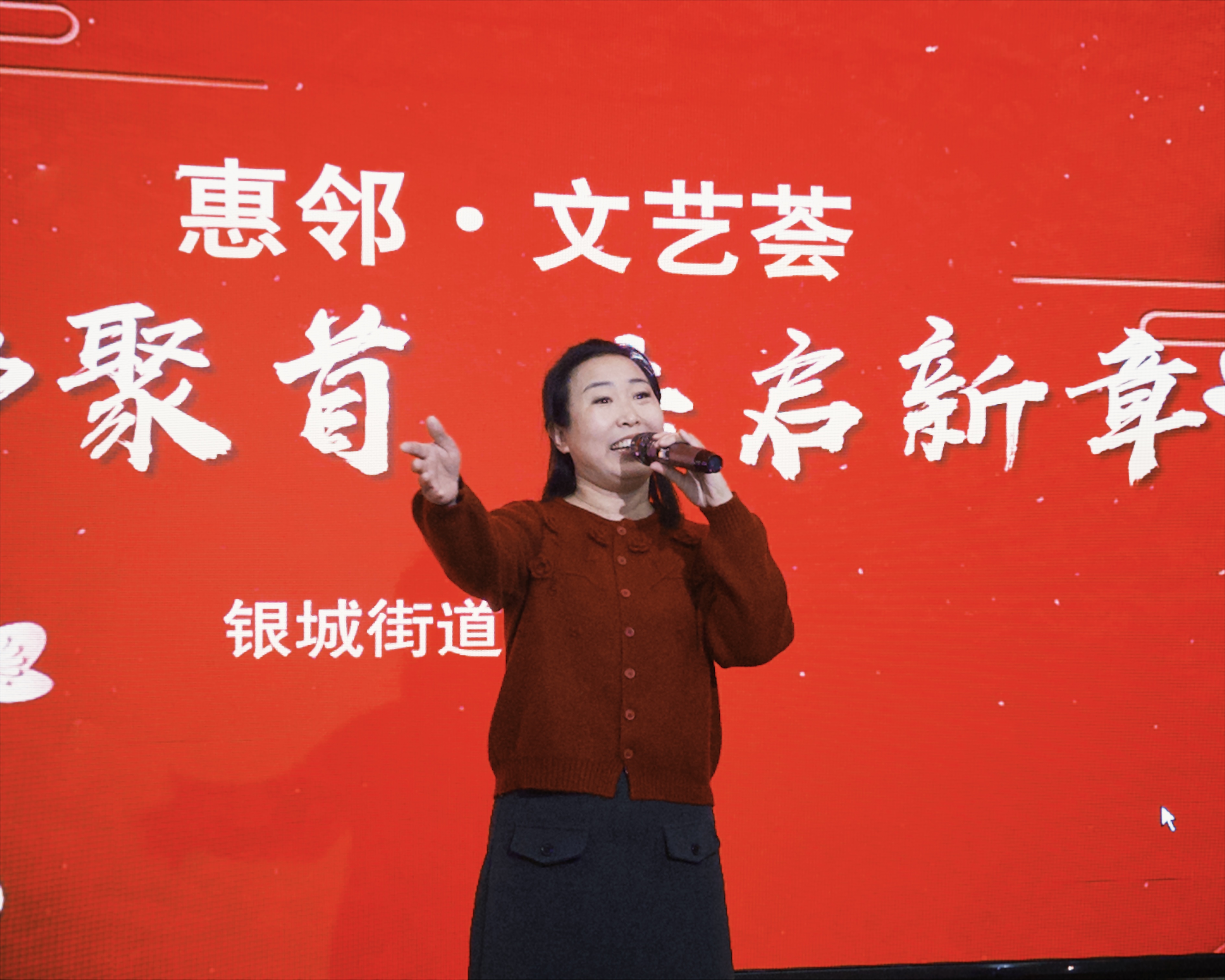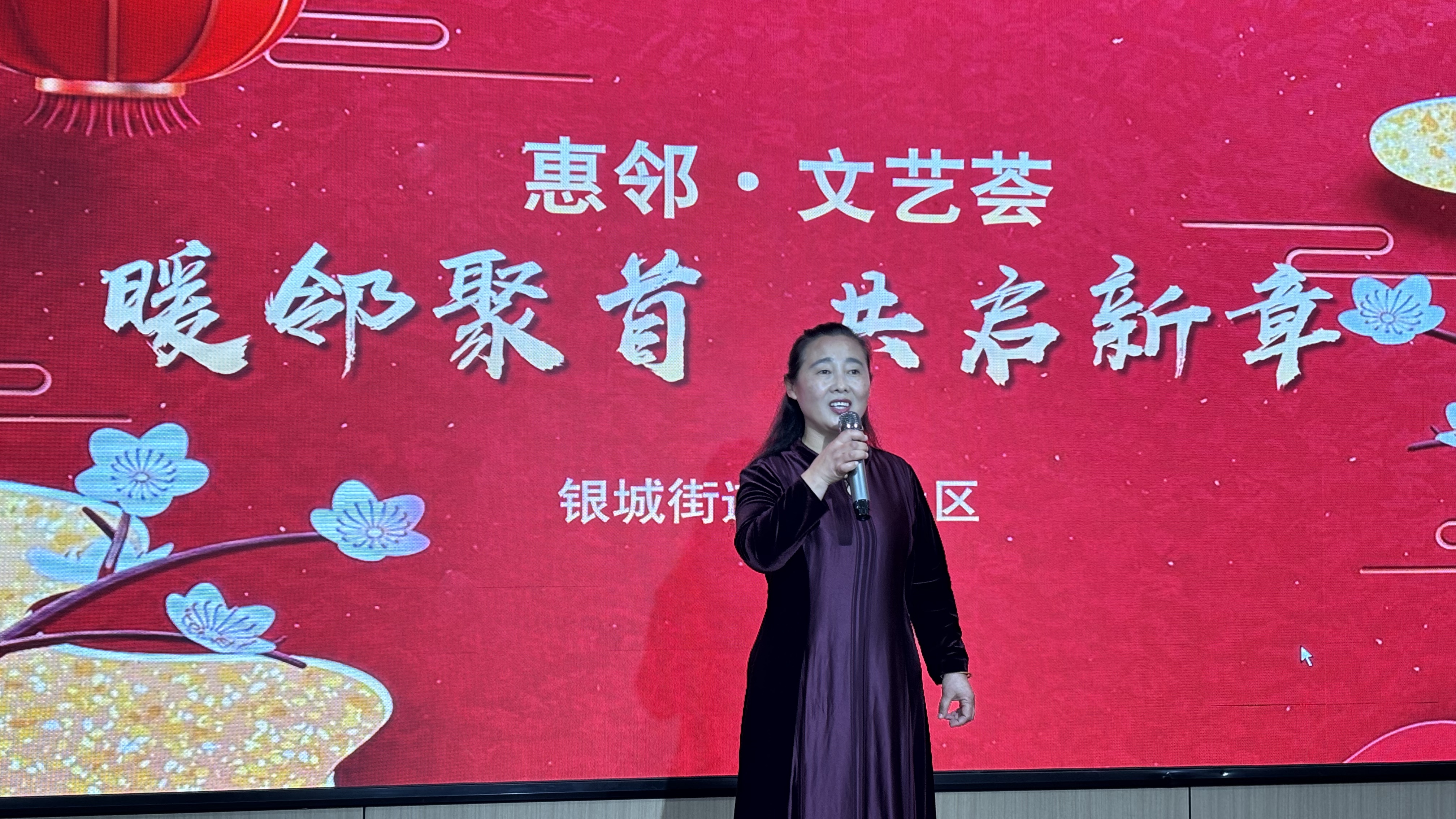 随着欢快的旋律响起,文艺演出正式拉开帷幕。整场演出以歌曲为主线,涵盖独唱、二重唱、小合唱、诗歌合诵等多种艺术形式,17 个节目轮番登场,内容丰富、精彩纷呈。开场曲《美丽的家园》旋律悠扬,生动勾勒出社区宜居宜业、邻里和睦的温馨画卷,迅速点燃了现场的喜庆氛围;《如是》空灵婉转,将细腻情感融入音符,引人沉醉;《站在草原望北京》气势恢宏,唱出了对祖国繁荣昌盛的由衷赞美与深切热爱。