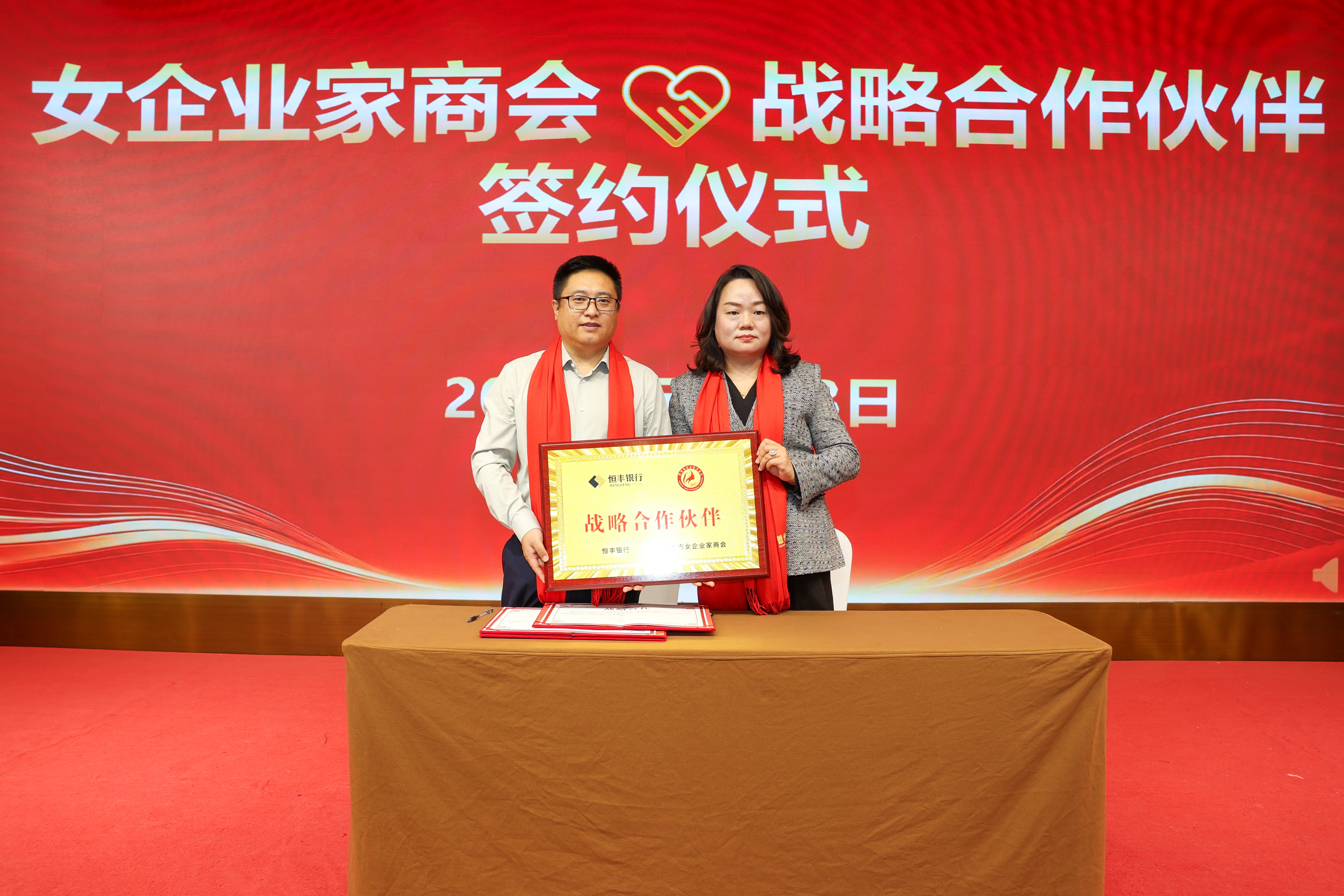 分享结束后,刘雅楠代表商会与恒丰银行德州分行行长张存,青岛银行德州科技支行行长尹玉秀,亳州古井销售有限公司、德州华泽酒业总经理张志燕共同举行合作仪式,深化多方协同赋能。