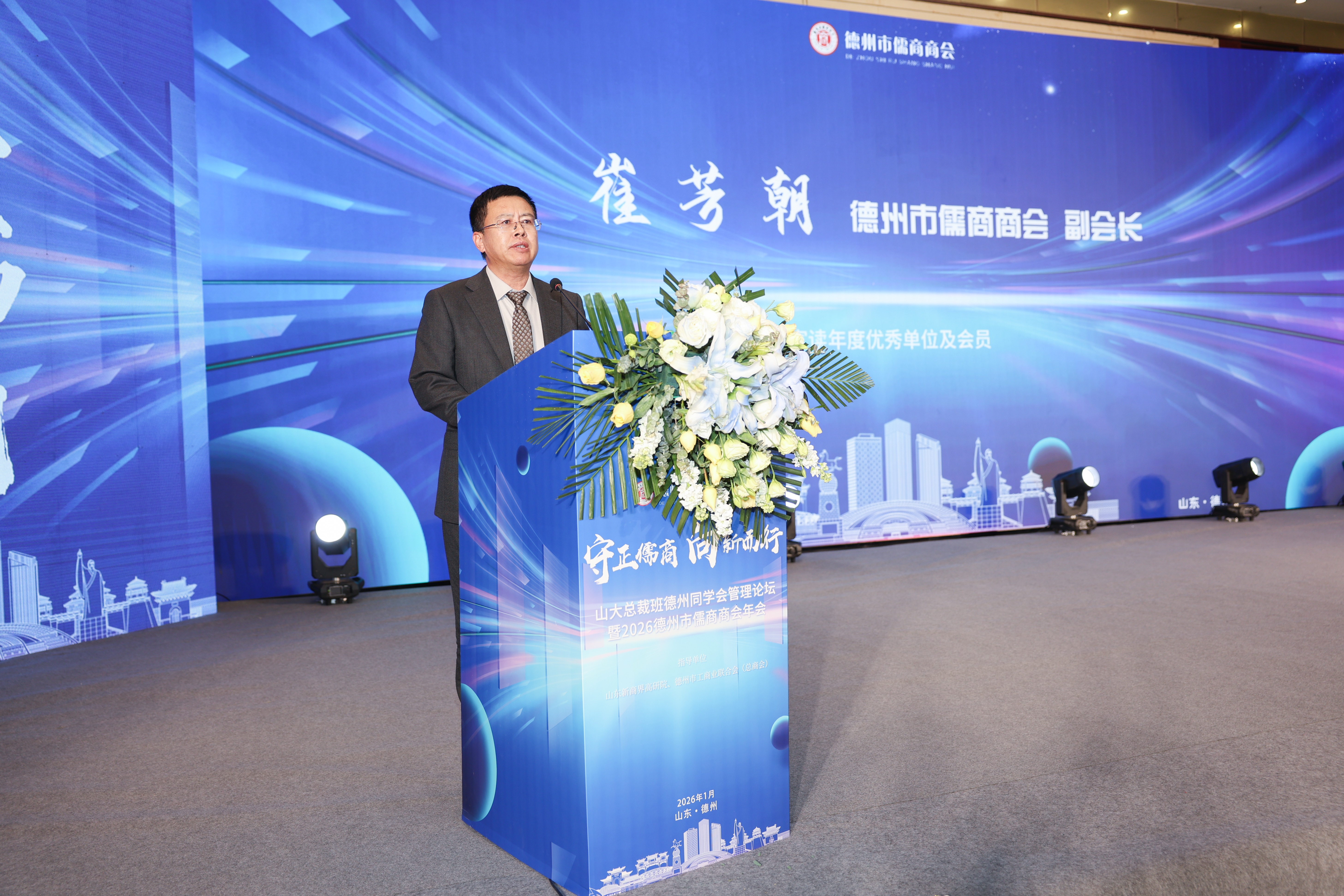1月26日,2026山大总裁班德州同学会管理论坛暨德州市儒商商会年会顺利召开。活动分为管理论坛、年会会议和年会晚会三大环节,汇聚学界专家、商会成员及相关单位代表,围绕文化赋能、商会建设、高质量发展等议题展开交流。