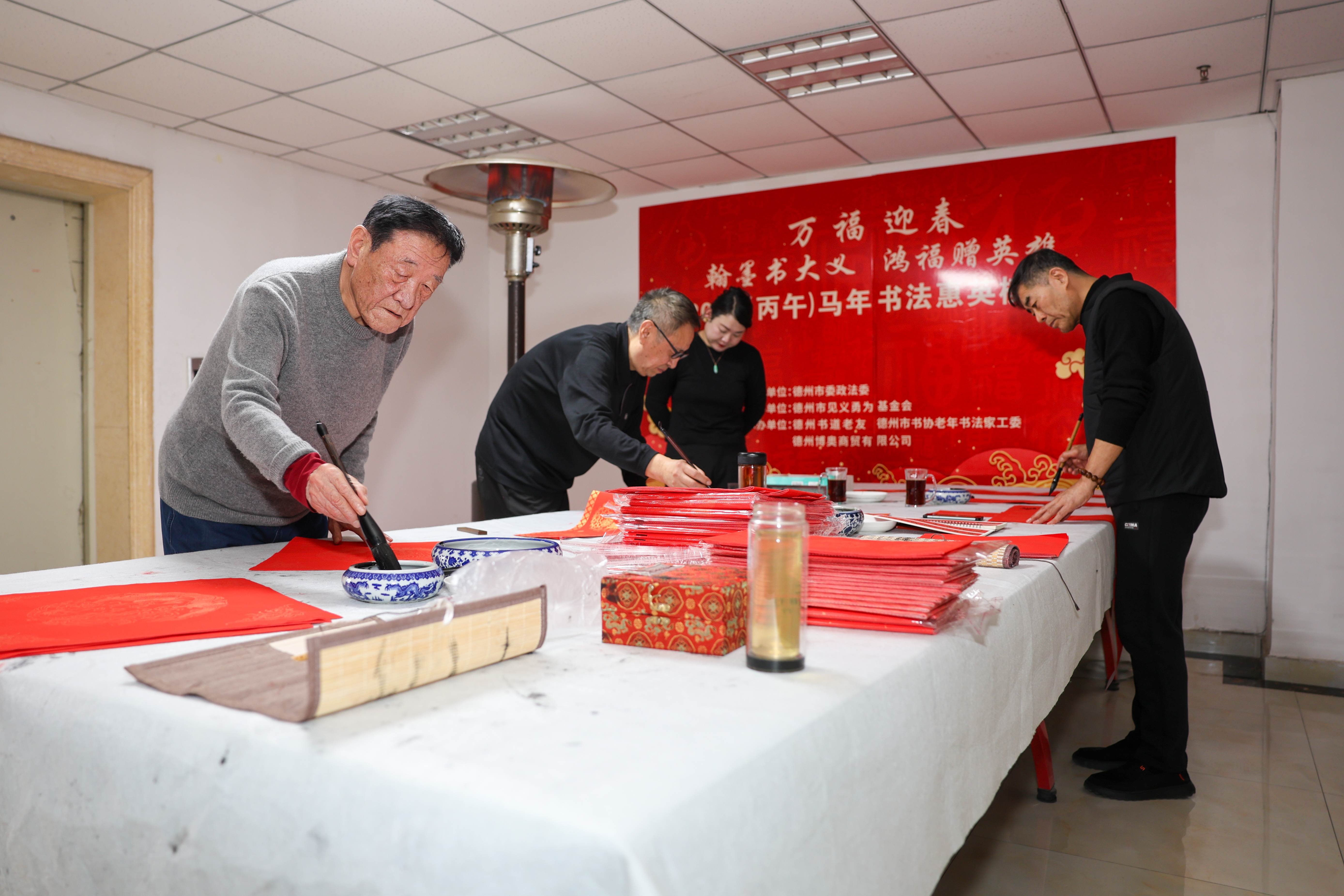 2月1日上午,德州市见义勇为基金会举办“翰墨书大义 鸿福赠英雄”2026(丙午)马年书法惠英模笔会活动,邀请德州书道老友、市书协老年书法家工委的书法家现场挥毫,将饱含敬意的春联与福字赠予见义勇为模范代表,以传统文化艺术礼赞英雄精神,传递社会温情。