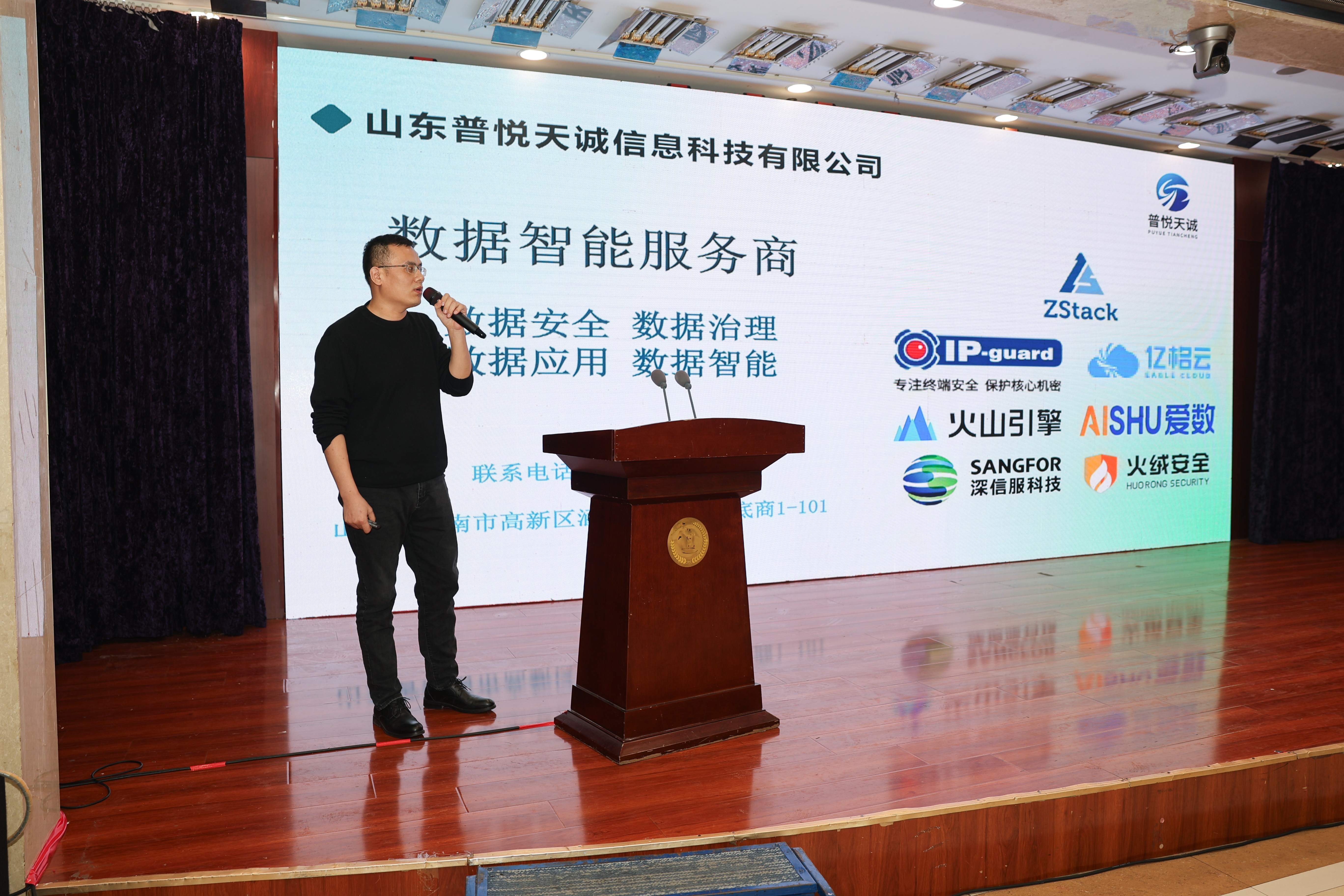 企业分享环节,多家行业标杆企业代表分享了数字化转型的创新实践。四川湖山电器股份有限公司山东分公司技术总监刘一霖聚焦《音视频物联网平台的安全防护与创新实践》展开讲解;北京致远互联软件股份有限公司山东分公司方案总监王朝勃深度解读《AI-COP 助力组织智能跃进》;山东普悦天诚信息科技有限公司数据智能顾问张芳昌分享《data+AI架构数据智能方案》;远景(山东)数字技术有限公司总经理张士旺围绕《数据驱动、AI 赋能:企业数字化转型的路径创新与生态构建》交流经验。