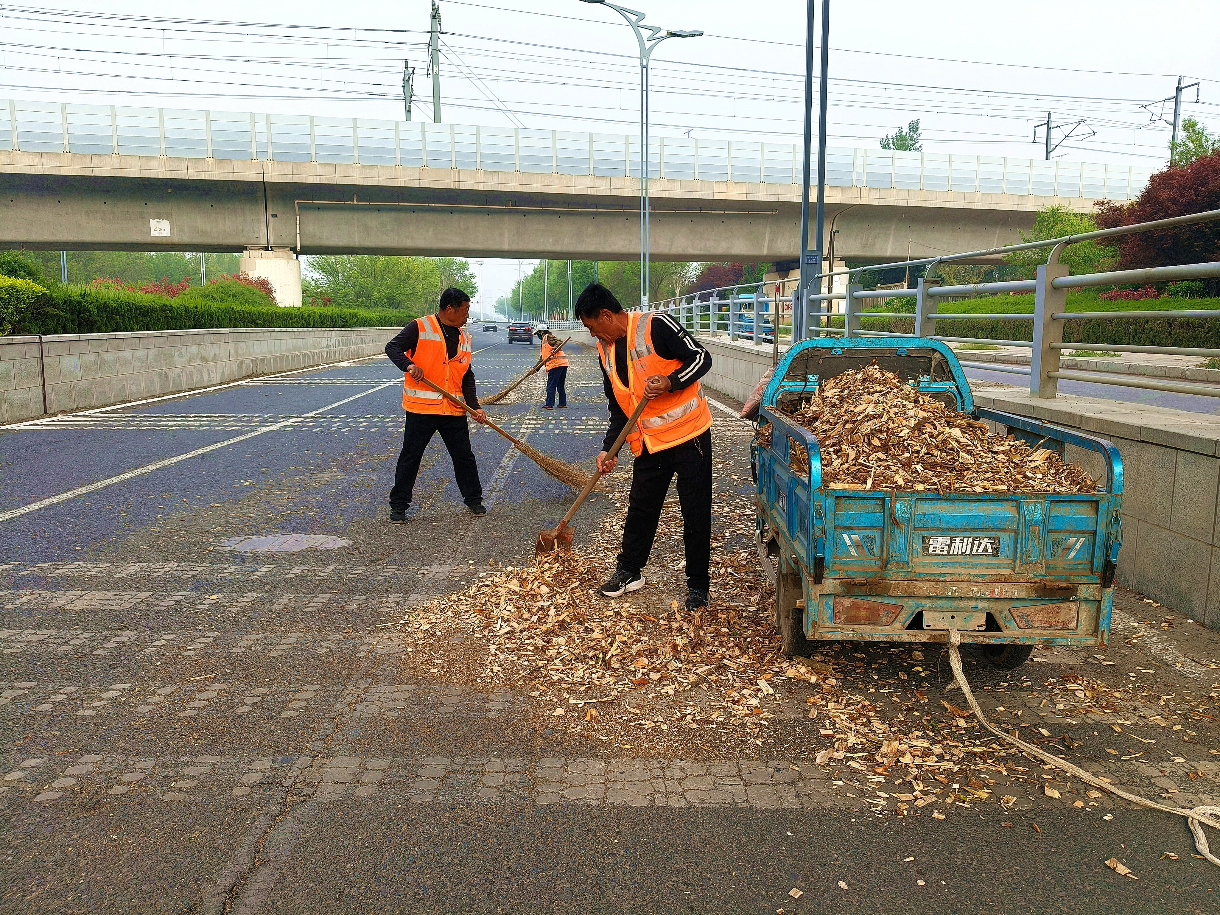 险情就是命令,大队第一时间启动应急处置预案,迅速调度就近保洁作业人员,携带扫帚、铁锹等作业工具,同步调配清运车辆火速赶赴现场,全力开展专项清理作业。作业过程中,保洁人员分工明确、配合默契、行动迅速,在保障自身安全的前提下,快速收拢散落木片,及时将清理的杂物装车清运,做到清理彻底,最大限度缩短道路处置时间,减少对车辆通行的影响。经过半小时紧张高效作业,路面散落木片全部清理完毕,道路恢复整洁原貌。