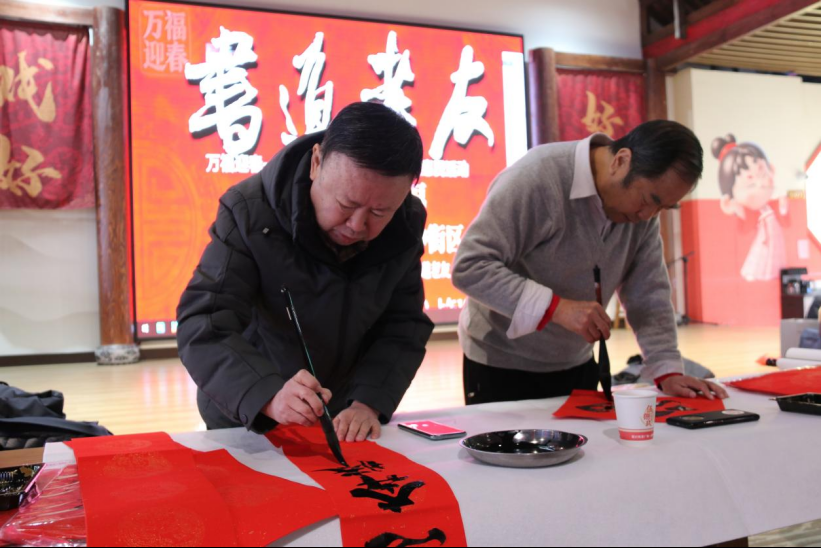 1月24日,德州书道老友写春联送祝福笔会在德百奥莱广场589街区举办。此次活动由德州市革命老区建设促进会、德州书道老友、德州市书协老年书