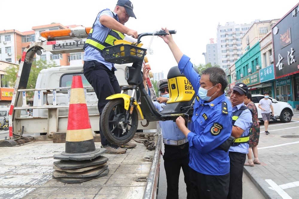 德城区东地路因沿街门店多,行人车辆容易扎堆,成了比较繁忙的一条街道,从早到晚交通乱象问题比较突出。普遍存在机动车乱停乱放、非机动车占用机动车车位、不按规定停放在非机动车、占道经营等违法行为。在行动中执法人员发现,这里最为突出的违法行为就是占用车位问题,机动车占用非机动车车位,非机动车也占用机动车车位。