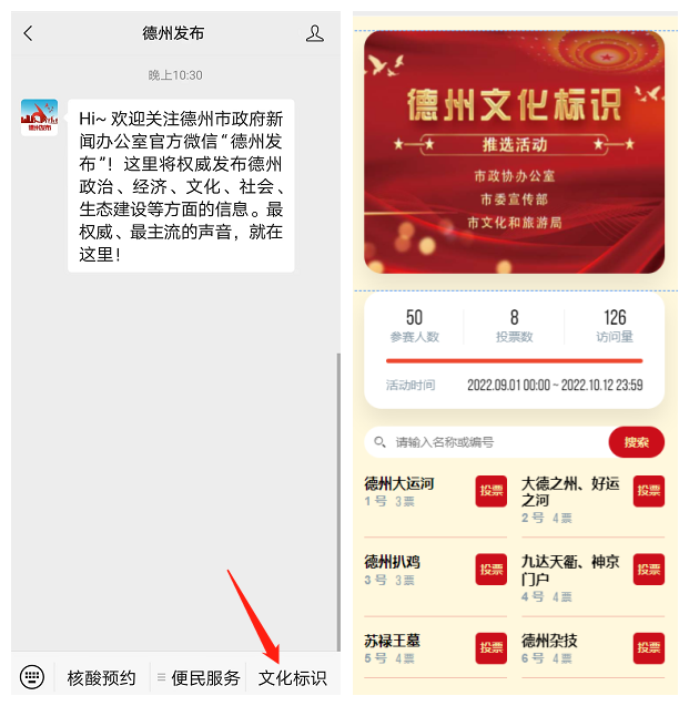 第二步,点击右下角“文化标识”,直接进入投票页面