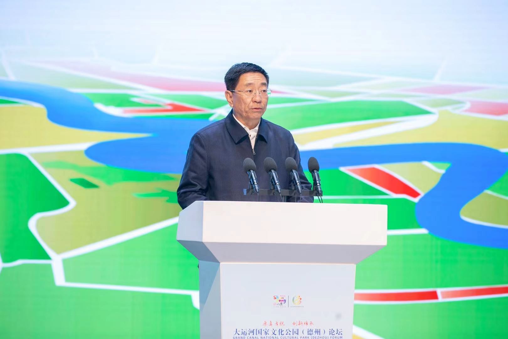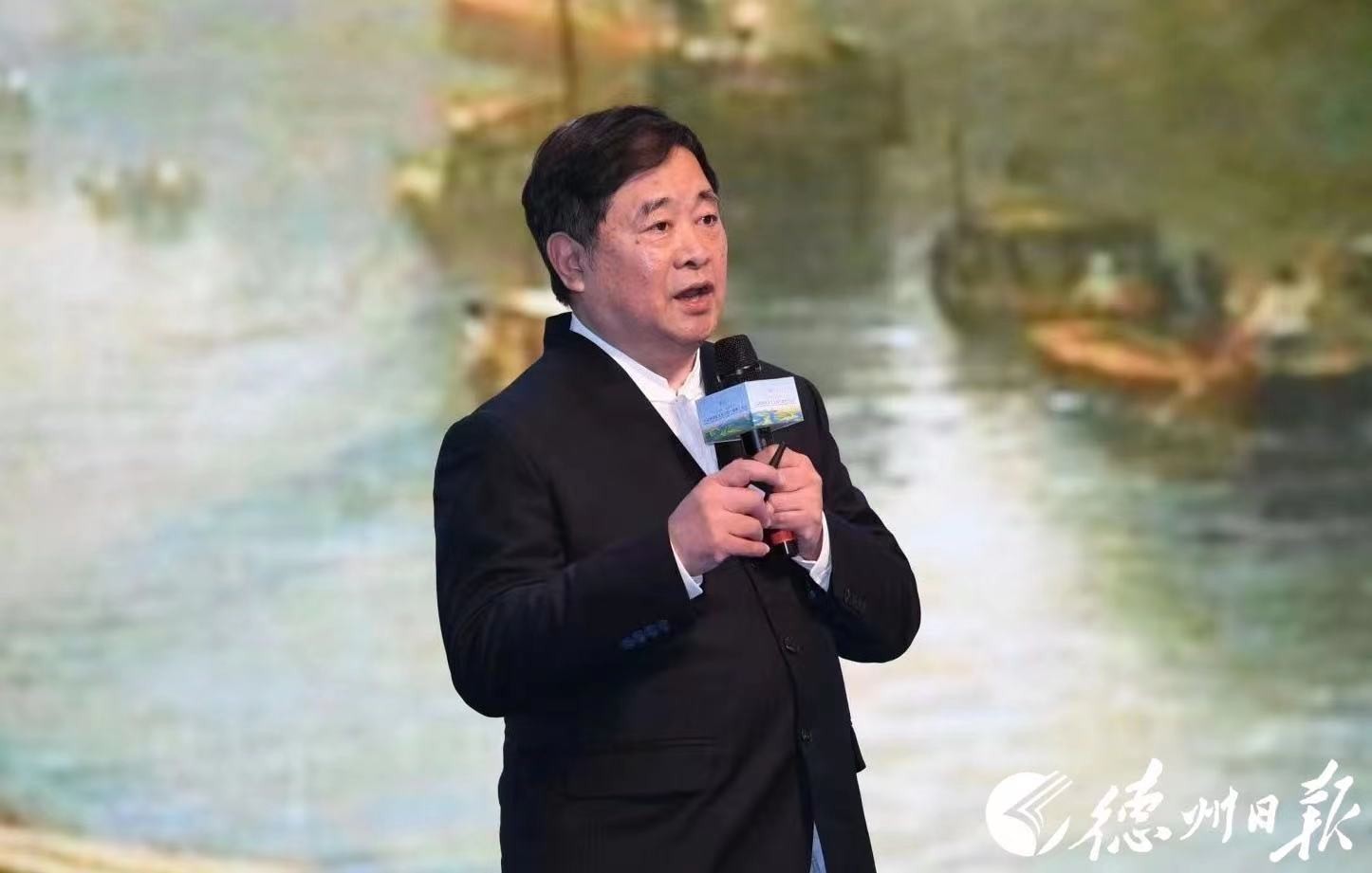 中国文物学会会长、故宫博物院学术委员会主任单霁翔介绍大运河文化保护传承利用情况(图片来源:德州日报)