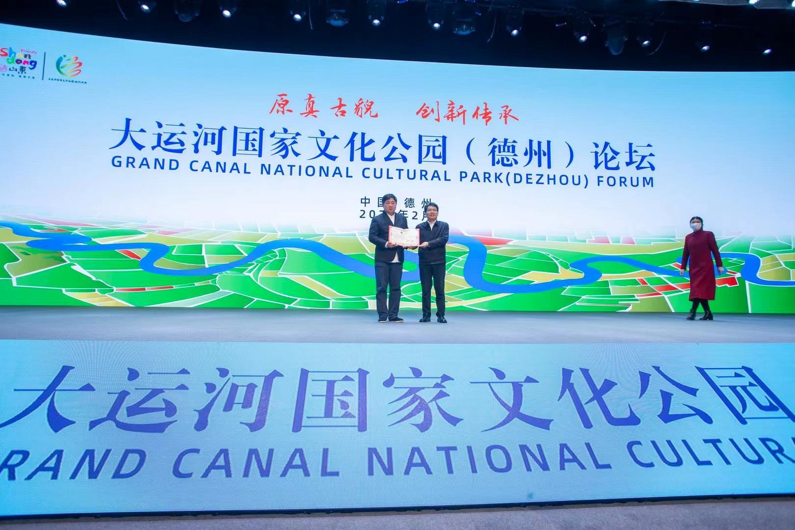 成立大运河国家文化公园德州段建设专家委员会,山东省副省长邓云锋为中国文物学会会长、故宫博物院学术委员会主任单霁翔颁发主任委员聘书
