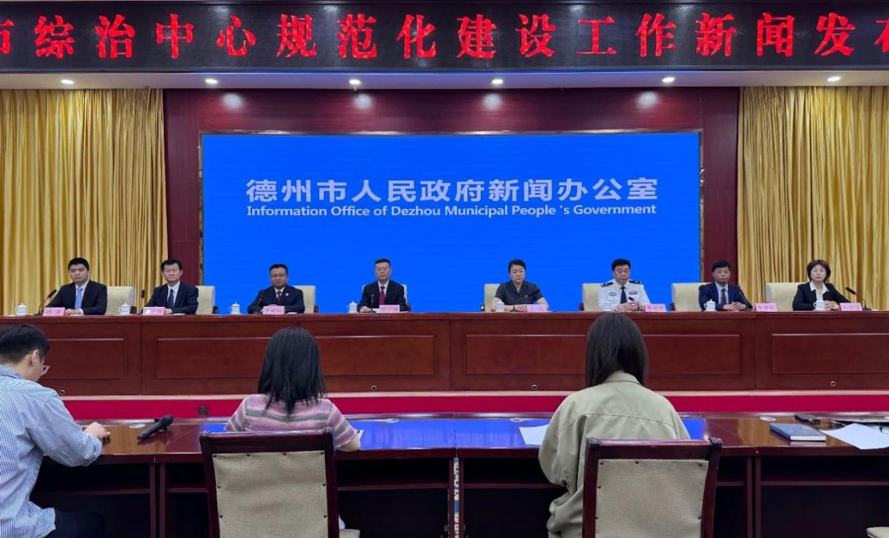 为深入贯彻落实中央、省委和市委关于推进综治中心规范化建设的工作安排,进一步展示德州市综治中心规范化建设成果,5月23日,德州市召开德州市综治中心规范化建设工作新闻发布会,邀请市委政法委副书记、新闻发言人周少国,市法院审委会专职委员王慧,市检察院党组成员、副检察长、新闻发言人范树林,市公安局党委委员、副局长鲁英杰,市司法局党组副书记、二级调研员、新闻发言人贾长群,市信访局信访督查专员李孝林,市“12345”市民热线服务中心副主任刘俊芬出席,介绍全市综治中心规范化建设工作的总体情况,并回答记者提问。