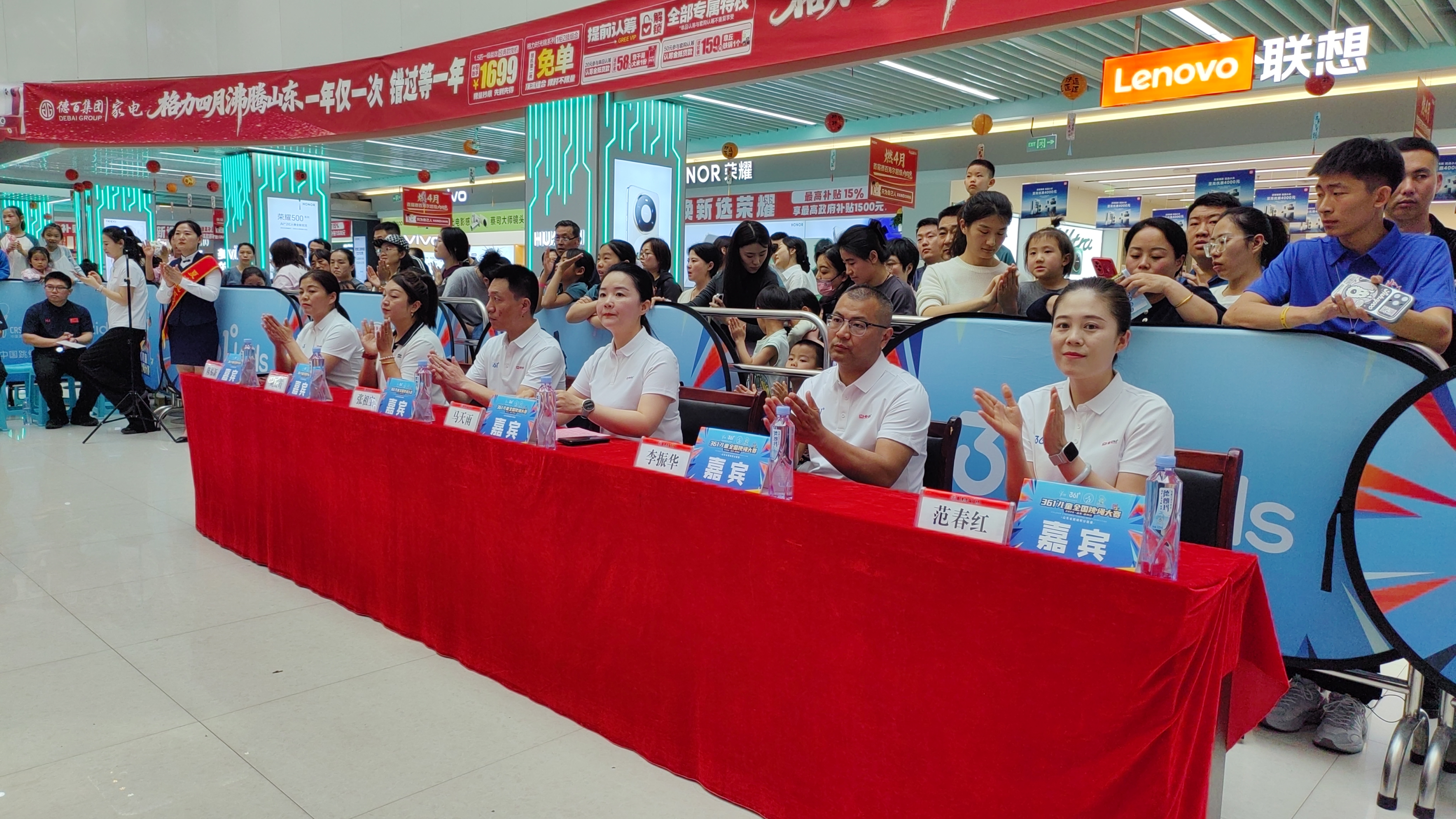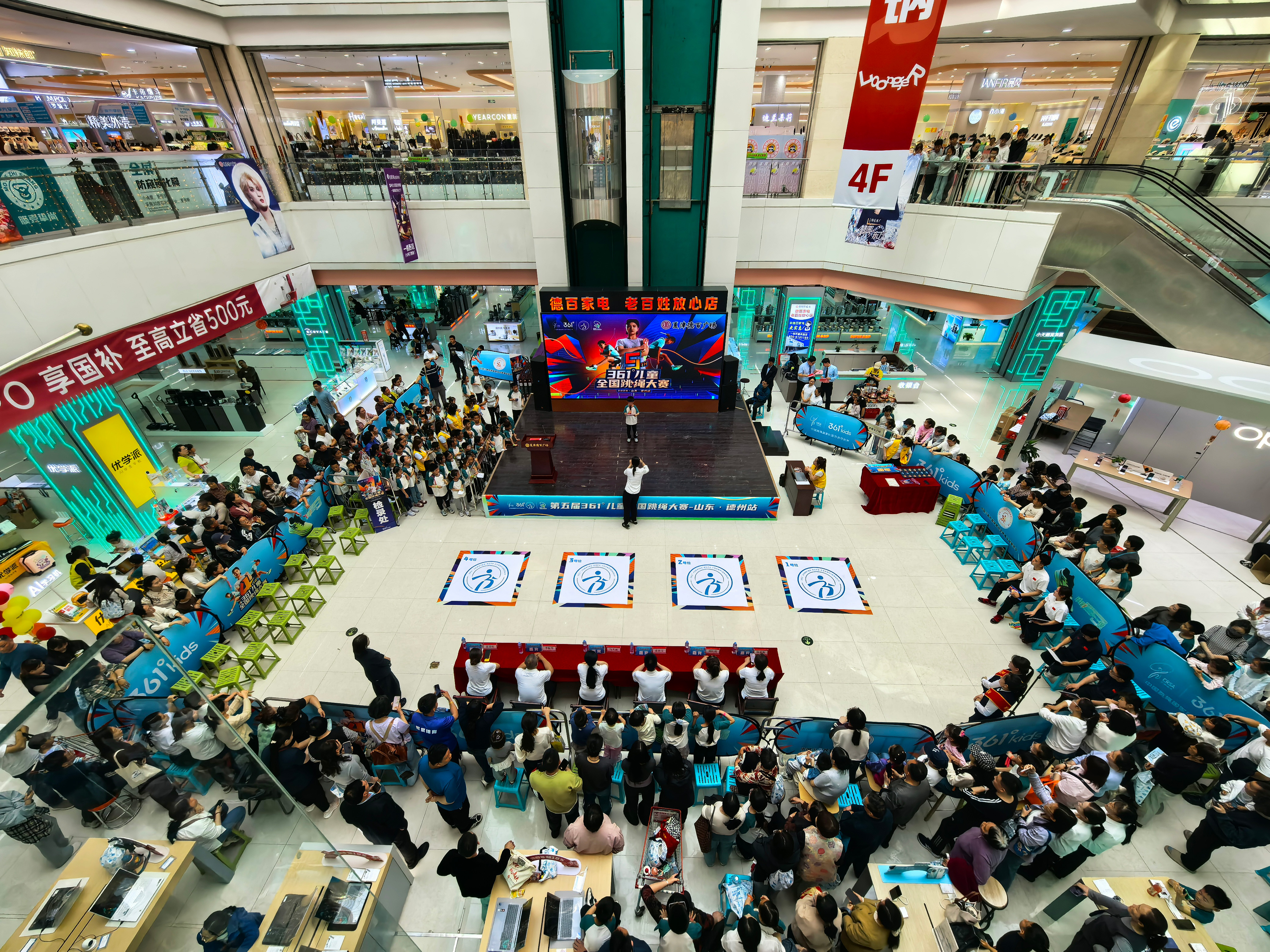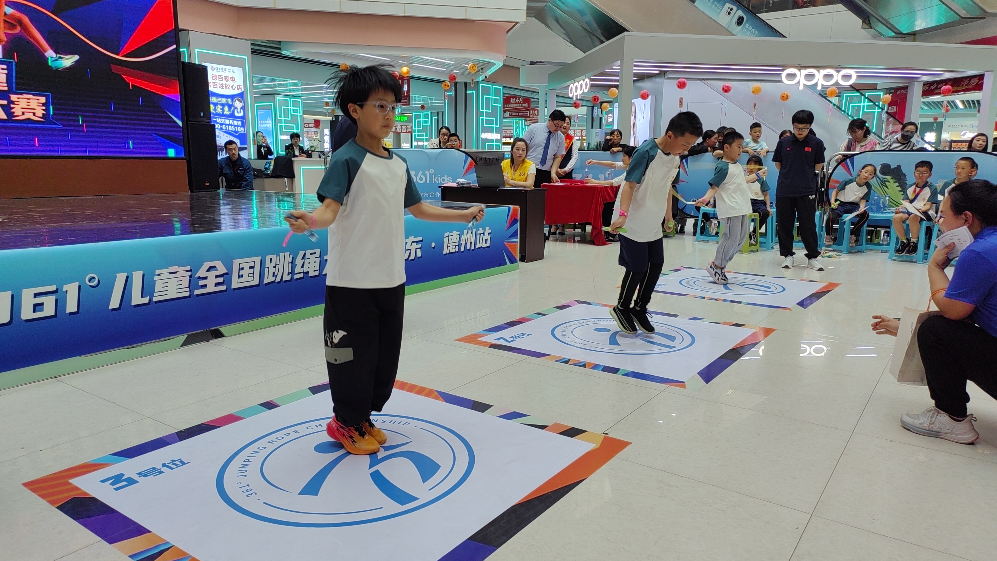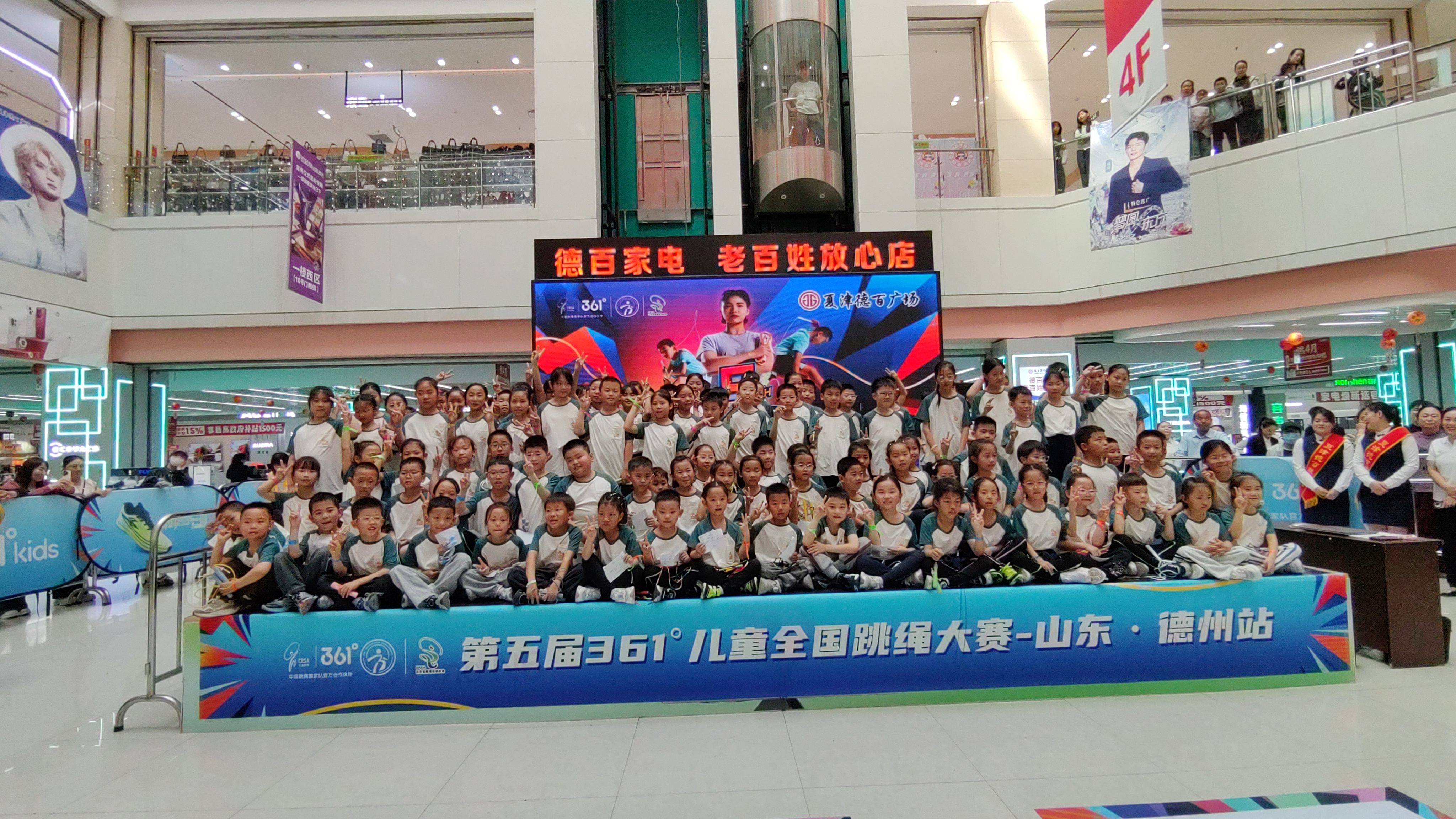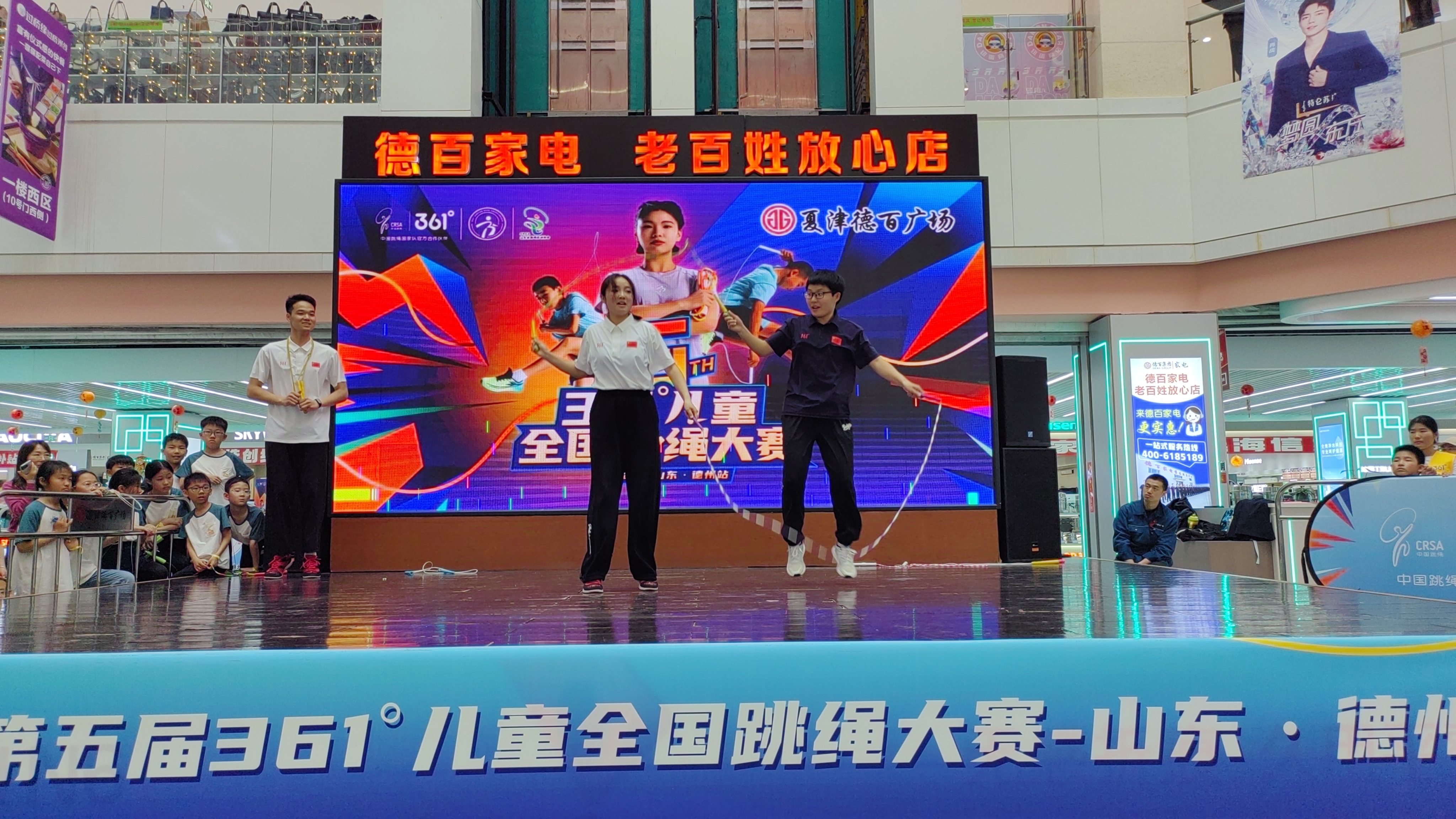 4月11日,夏津德百广场热闹非凡。由夏津县体育总会、夏津德百广场联合361°儿童共同举办的361°全国儿童跳绳大赛在此盛大开幕。夏津县体育中心副主任、县体育总会副主席张祖宝,夏津德百广场总经理马天雨等出席开幕式。