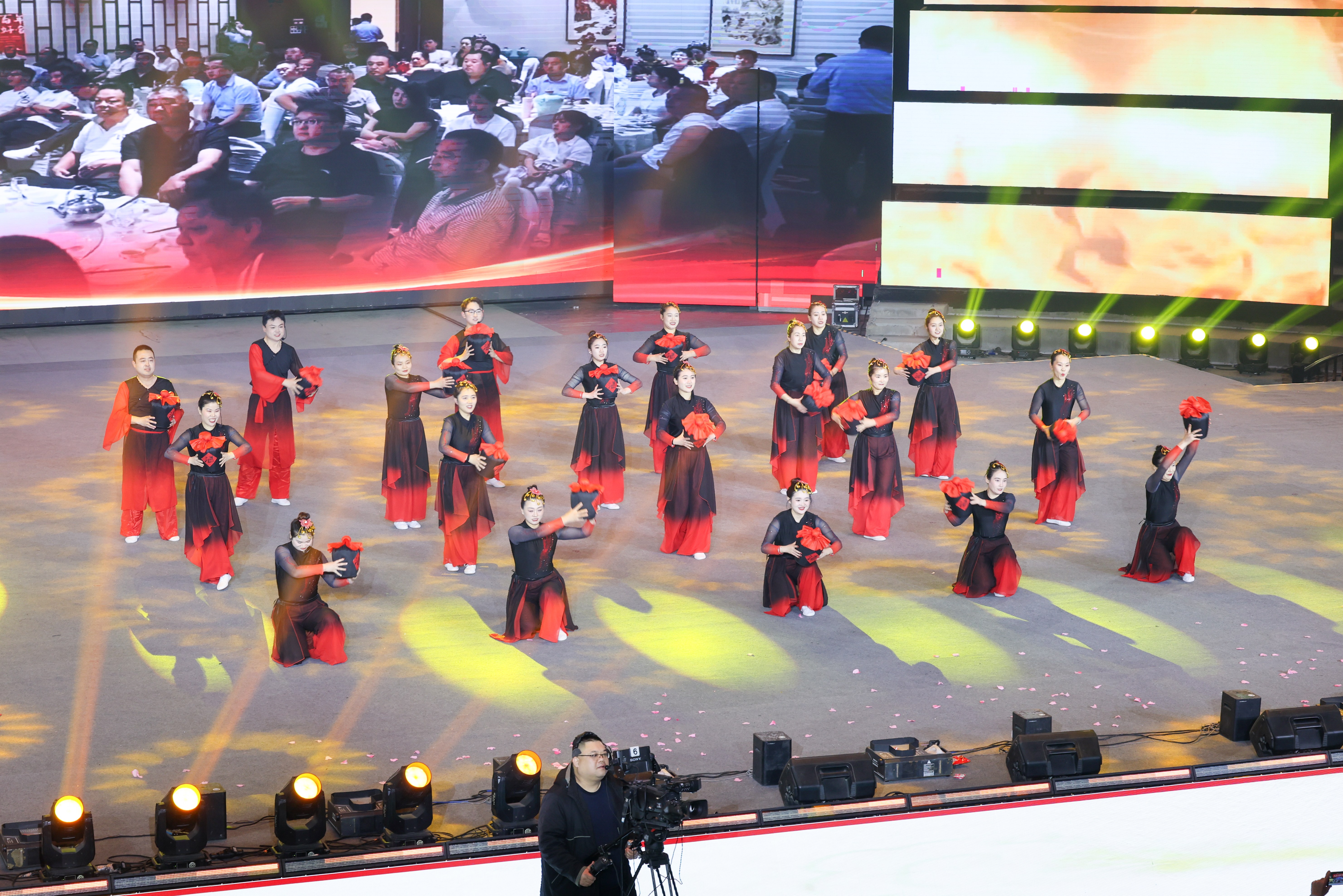 当晚7时许,晚会以德百大楼大型歌舞《迈向新征程》震撼开场,演员们用激昂旋律与豪迈舞姿,展现了德百人奋进新征程的坚定信念。整场晚会涵盖诗朗诵、小品、民乐、情景剧等20个原创节目,均由员工自编自导自演,紧密融合时代主题与企业实践。